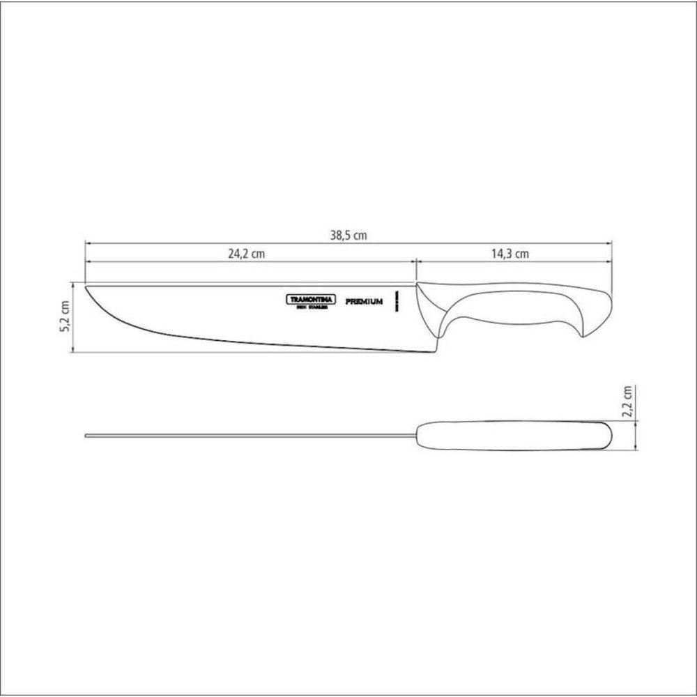 Faca Para Cozinha Tramontina 10 Premium Cabo BrancoAs facas da linha Premium Tramontina tem lâmina de aço inoxidável e cabo anatômico, tornado seu uso diário fácil e prático.- Linha PREMIUM.Recomendações de Uso:Antes do uso: Antes de utilizar o , remova as eventuais etiquetas e lave-o com água quente e de uso:Durante a lavagem use somente esponja macia, outros tipos de produtos, como palha de aço, poderão riscar ou prejudicar o brilho do aço inox. Enxágue bem a peça a fim de remover totalmente os resíduos dos produtos de limpeza, que por serem abrasivos, podem danificar o inox. Após a lavagem enxugue a faca, pois as substâncias químicas contidas na água poderão causar manchas. Sempre que possível use água quente, pois renova o brilho do talher. Evite o das peças com superfícies quentes, pois podem provocar a descoloração do produto. Quando usar a máquina de lavar louça, recomendamos retirar o talher logo que tenha terminado o ciclo enxaguar, a fim de que os mesmos sejam secados manualmente.- Tenha cuidado ao Manusear produtos cortantes e perfurantes e mantenha-os fora do alcance de crianças.- Foto meramente ilustrativa.- Embalagem blister.Informações Adicionais:- Lâmina fabricada em aço inox inoxidável semi desbastada, o que proporciona um excelente corte e rendimento do fio.- Cabo em polipropileno.- Possui cabo anatômico e texturizado, facilitando o manuseio e evitando que a mão escorregue, oferecendo mais conforto e segurançana hora do corte.- Para evitar a formação de folgas ou frestas entre as partes e a retenção de resíduos, além de facilitar a limpeza, o cabo é injetado diretamente sobre a espiga da própria lâmina.