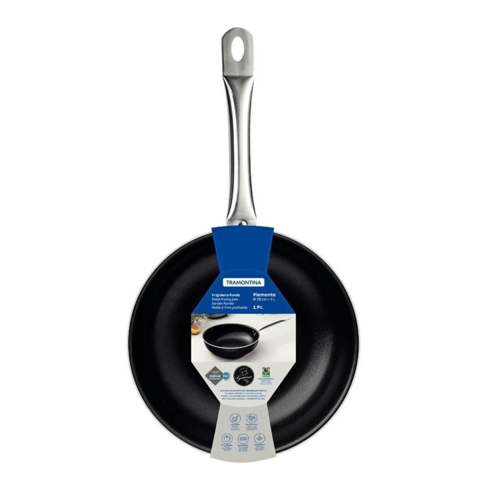 Frigideira Funda Tramontina Piemonte 30cm Em Alumínio E Revestimento Antiaderente PretaA frigideira funda Tramontina Piemonte em alumínio com revestimento interno e externo em antiaderente Starflon Excellent preto 28 centímetros de diâmetro 4 litros será sua grande aliada na sua cozinha! Desenvolvida em alumínio, ela conta com revestimento interno e externo em antiaderente Starflon Excellent e devido a isso, proporciona um cozimento rápido e eficiente dos alimentos, sem que eles grudem em sua superfíe. Com um cabo de aço inox, ela ainda garante durabilidade e durante o manuseio, proporcionando uma experiência culinária e prazerosa. Explore todo o seu potencial na cozinha e conte com a linha Tunis para facilitar suas preparações, tornando-as mais saborosas e eficientes!Recomendações de Uso:Antes do Uso: A capacidade volumétrica máxima para cozimento é de ¾ da capacidade total da peça. Antes do primeiro uso, lave com esponja macia, sabão neutro ou detergente líquido. Depois de secar, unte a área interna com óleo ou gordura e leve ao fogo por um ou dois minutos. Deixe esfriar e lave novamente.Modo de Uso: Posicione os cabos dos utensílios voltados ao centro do fogão. Em fogões com grade, centralize as peças sobre a chama ou fonte de calor e alinhe os cabos com a grade. Utensílios quentes devem estar fora do alcance das crianças. Para mexer os alimentos use somente utensílios de silicone, nylon ou madeira. Para descarte dos produtos e embalagem siga as orientações de reciclagem vigentes.- Foto meramente ilustrativa.Informações Adicionais:- Livre de PFOA;- Cabo de aço inox.- Corpo de alumínio;- Podem ir à máquina de lavar louças facilitando seu dia a dia;- Revestimento interno e externo de antiaderente Starflon Excellent;- Este produto pode ser levado ao forno para gratinar ou finalizar pratos, na temperatura máxima de 260 °C, podendo haver mudança na coloração do cabo.