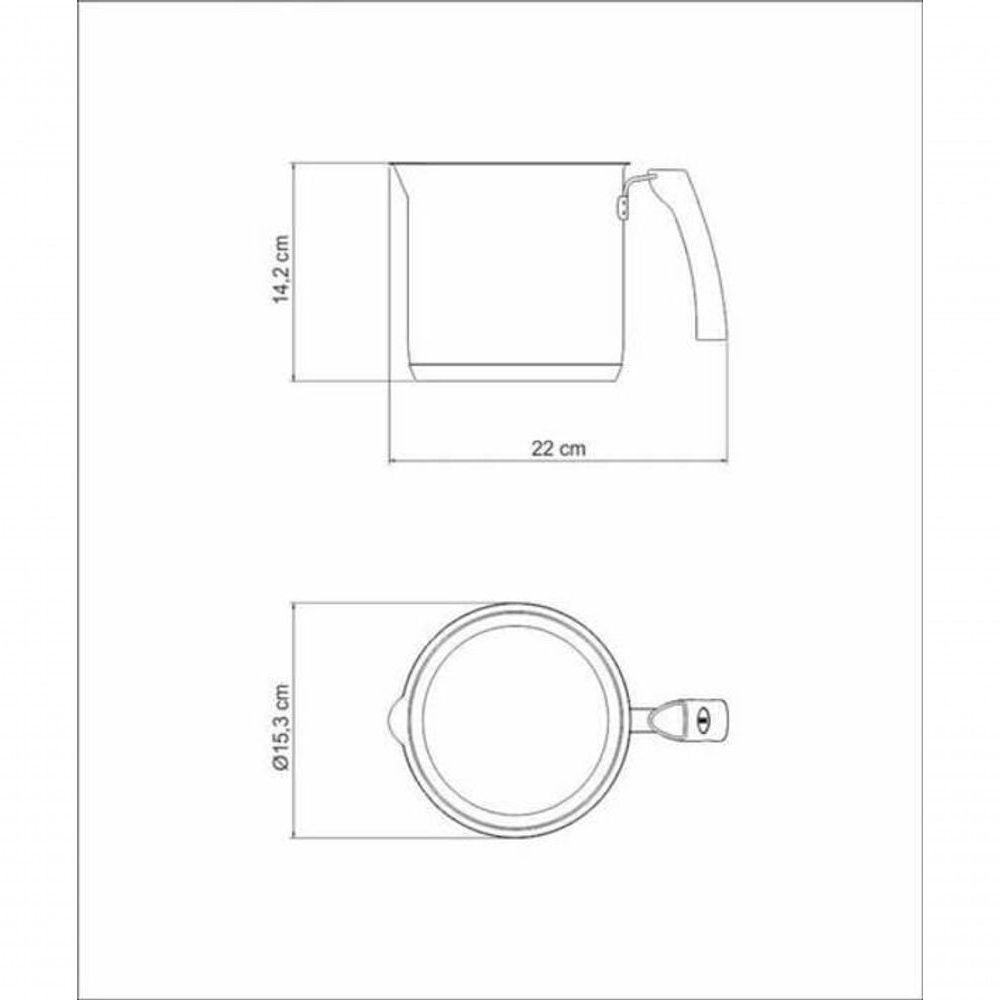 Fervedor Tramontina Duo Silicone 14cm Em Aço Inox O Fervedor Tramontina em Aço Inox com Fundo Triplo e Cabo de Silicone 14 cm de diâmetro 2 L conta com um alto brilho, mas o que irá brilhar mesmo é a receita que você irá preparar nele. O fervedor da linha Duo Silicone, produzido em aço inox e fundo triplo conta com uma camada de inox, que ficará em com alimento, evitando que haja partículas que alterem o sabor e os nutrientes dos produtos. A sua segunda camada de alumínio é excelente para manter a temperatura uniforme, ou seja, o cozimento é feito por igual. A terceira camada externa é feita de aço inox, garantindo durabilidade e resistência. Com o Fervedor da Tramontina você cozinha sem , sabendo que tudo dará certo.Recomendações de Uso:Antes de utilizar o produto, remover as eventuais etiquetas e lavar com água quente e uma fonte de calor brando para evitar que o alimento grude no fundo do fervedor. O fundo triplo distribui uniformemente o calor, não sendo necessário o fogo alto. E, além disso, você economiza o fervedor for utilizado no fogão a gás, a chama não deve ultrapassar a base do fervedor. No caso de uso de chapa elétrica, a chapa deverá ter diâmetro igual ou inferior ao do dissolva o sal em água fervendo ou com os alimentos, mexendo os ingredientes no início do ão aqueça o alimento colocando um fervedor do mesmo diâmetro sobre o outro. Esse procedimento é perigoso, pois cria vácuo e impossibilita a retirada do cabo de inox aquecem durante o cozimento. Aconselhamos o uso de luvas durante o alimentos que possuem amido, como massa e arroz, poderão deixar manchas na parte interna do fervedor durante o cozimento. Para remover facilmente as manchas, passe um pano umedecido com suco de limão ou vinagre, ou use a Pasta para Polir e Remover Manchas deixar alimento no fervedor por muito tempo; o sal também pode provocar que o fervedor de aço inox fique sempre bonito e com brilho, recomendamos que seja lavado somente com detergente e esponja. A Tramontina desenvolveu uma pasta especial para polir e remover manchas nos produtos de aço inoxidável, que está disponível nos principais pontos de da lavagem, sempre que possível, enxágue o fervedor com água quente e seque-a imediatamente, para que ela mantenha o brilho , pois o cloro e as substâncias contidas na água podem deixar manchas no ão deixe o fervedor vazio sobre uma fonte de o fervedor quente somente em superfícies resistentes ao calor.Informações Adicionais:Mais saudável: por ser feito de aço inoxidável, o fervedor Tramontina não libera nenhum tipo de resíduo nas suas ácil de usar: um fervedor prático para todas as suas receitas e que faz bonito em qualquer tipo de fogão: gás, elétrico, vitrocerâmico e indução. O cabo vêm com revestimento em silicone antitérmico que evita queimaduras e torna a pega mais macia e confortá durável: o inox Tramontina é uma matéria-prima nobre, resistente e que vai fazer bonito por muito mais tempo na cozinha.Economiza tempo e energia: o segredo está no fundo triplo (aço inox + alumínio + aço inox), que distribui o calor uniformemente, proporcionando um cozimento mais rápido. Por isso, você pode manter o fogo baixo durante todo o preparo e, assim, poupar ácil de limpar: deixar seu fervedor brilhando é simples, você só precisa de água, sabão e uma esponja macia. Se preferir, é só colocar na máquina de lavar.
