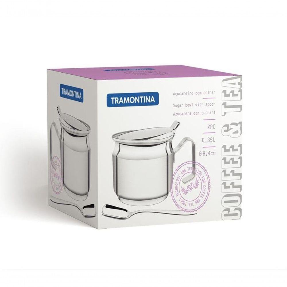 Açucareiro Tramontina Em Aço Inox Com Pá 8,4cmSofisticação, beleza e durabilidade são as principais características do Açucareiro Tramontina em Aço Inox com Pá 8,4 cm de diâmetro. Produzido em aço inox com acabamento fosco, este produto da linha Chá e Café não libera resíduos nos alimentos e pode ser lavado diariamente na máquina lavar louças.Recomendações de Uso:Modo de Uso: ;Use apenas sabão ou detergente e uma esponja macia. Outros tipos de produto como palha de aço, poderão riscar ou prejudicar o brilho das peças. Enxágue cada item a fim de remover totalmente os resíduos dos produtos de limpeza, que, por serem abrasivos, podem danificar o inox. Sempre que possível, use água quente, pois renova o brilho das peças. Após a lavagem, enxugue imediatamente as peças, caso contrário, as substâncias químicas da água (cloro) poderão causar manchas. Evite atrito entre as peças durante o processo de lavagem e no armazenamento, para mantê-las sem riscos. Evite o do produto com superfícies quentes, pois elas provocam a descoloração do material. Não guarde as peças em locais úmidos. A umidade também provoca manchas.- ;Foto meramente ilustrativa.Informações Adicionais:- Ideal para servir açúcar;- Acabamento fosco com detalhe em brilho;- Próprio para o uso diário, combinam com qualquer ambiente;- Podem ser lavados, diariamente, na máquina de lavar louças;- Totalmente feitos de aço inox, por isso não soltam nenhum resíduo nos alimentos, mantendo-os saudáveis;- Altamente duráveis, mantêm as características , preservando a beleza, a higiene e a durabilidade do material.