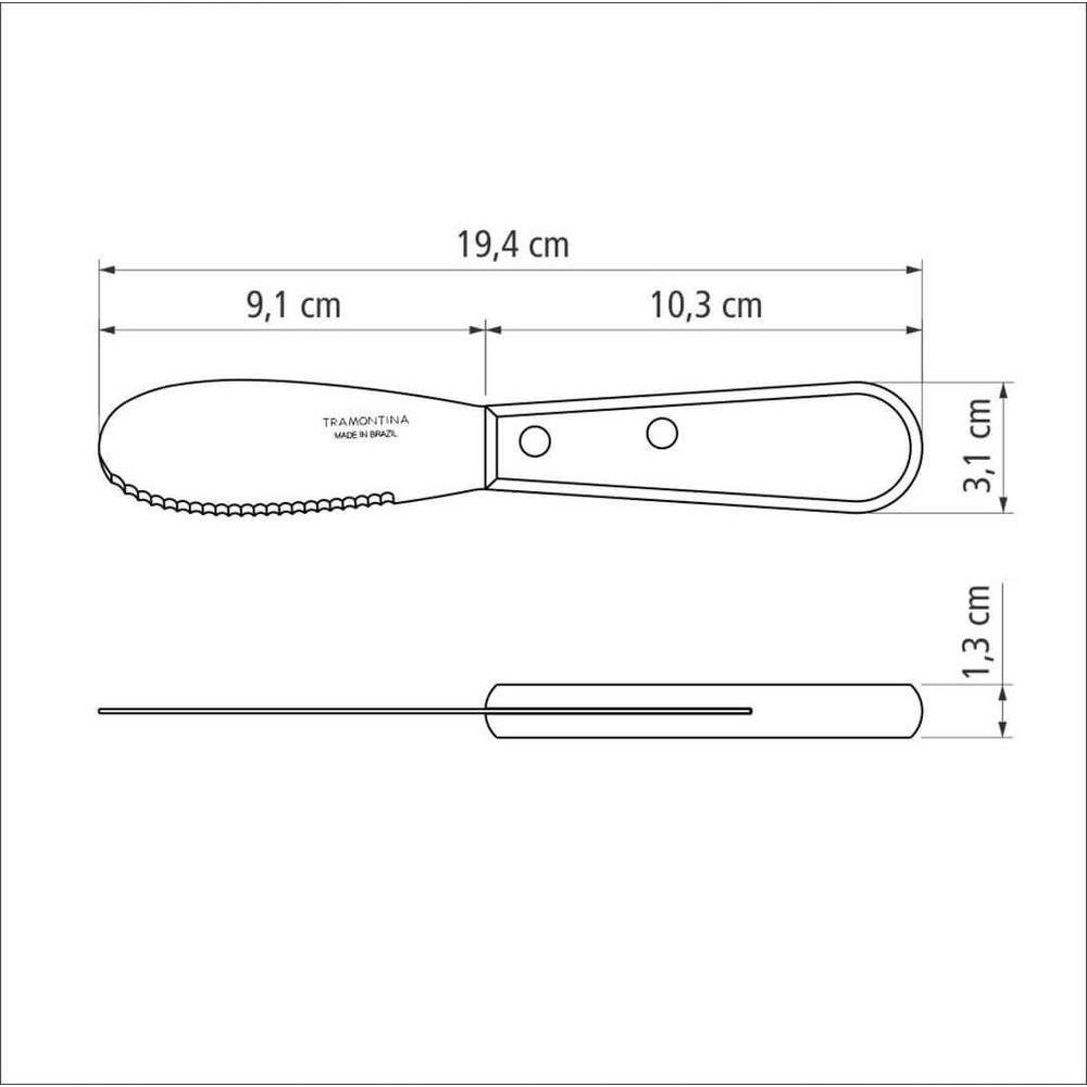 Espátula Tramontina 3 Polywood Inox Serrilhada VermelhaTalheresde qualidade deixam sua mesa muito mais convidativa. Um exemplo é alinha Polywood que, com seus cabos de madeira tratada, faz bonito emencontros mais informais.Recomendações de Uso:Antes do uso: Antes de utilizar o , remova as eventuais etiquetas e lave-o com água e de uso: Durante a lavagem use somente esponja macia, outros tipos de produtos, como palha de aço, poderão riscar ou prejudicar o brilho do aço inox. Enxágue bem a peça a fim de remover totalmente os resíduos dos produtos de limpeza, que por serem abrasivos, podem danificar o inox. Após a lavagem enxugue a peça, pois as substâncias químicas contidas na água poderão causar manchas. Sempre que possível use água quente, pois renova o brilho do talher. Evite o das peças com superfícies quentes, pois podem provocar a descoloração do produto. Quando usar a máquina de lavar louça, recomendamos retirar o talher logo que tenha terminado o ciclo enxaguar, a fim de que os mesmos sejam secados manualmente.- Tenha cuidado ao Manusear produtos cortantes e perfurantes e mantenha-os fora do alcance de crianças.- Foto meramente ilustrativa.Informações Adicionais:- Cabo de madeira tratada, resistente a impactos, altas temperaturas e a máquina de lavar.- Cabo apresenta Cor em tons de VERMELHO.- Lâmina de aço inox com Maior durabilidade do fio Devido ao tratamento térmico que recebe.- Tem cinco anos de garantia contra de fabricação.