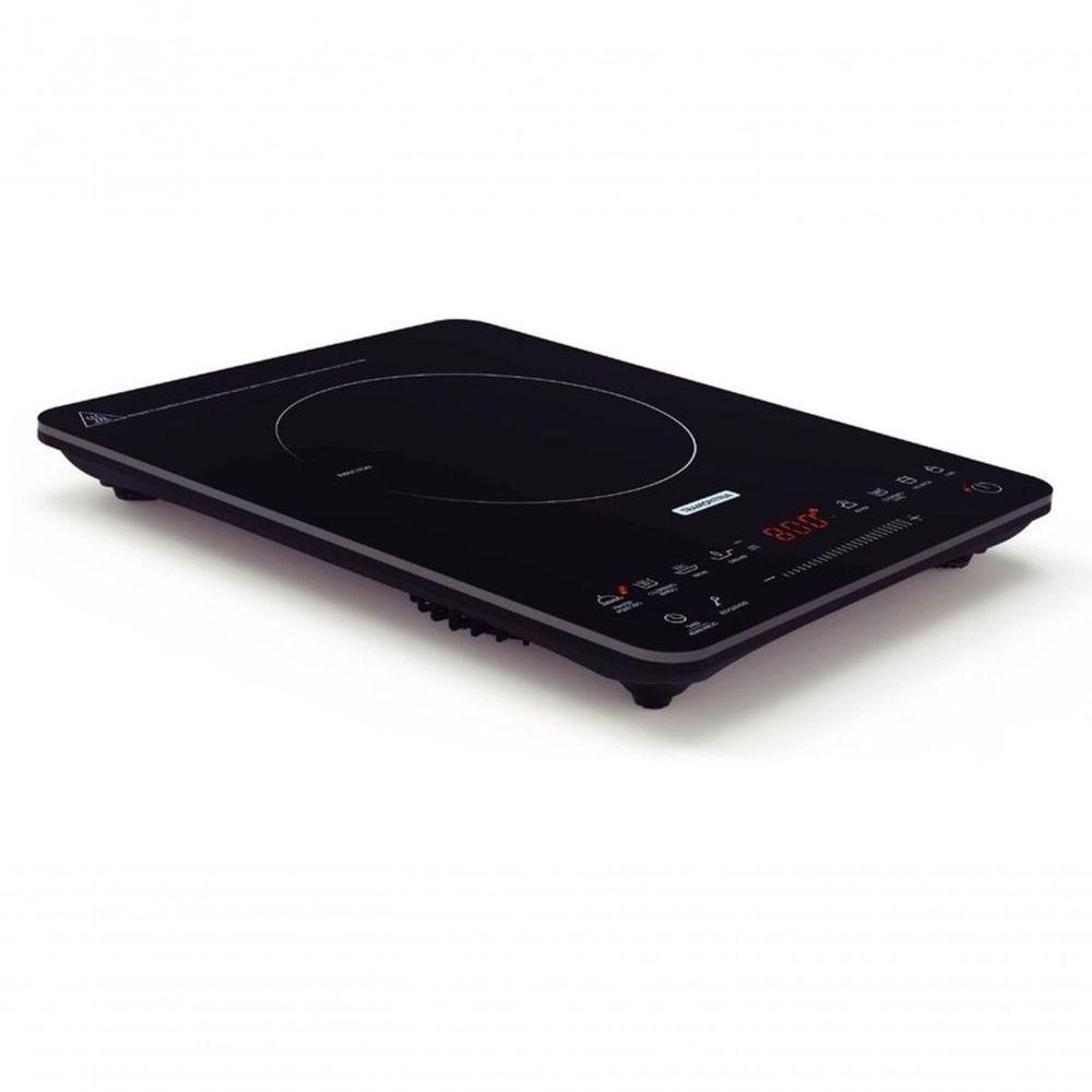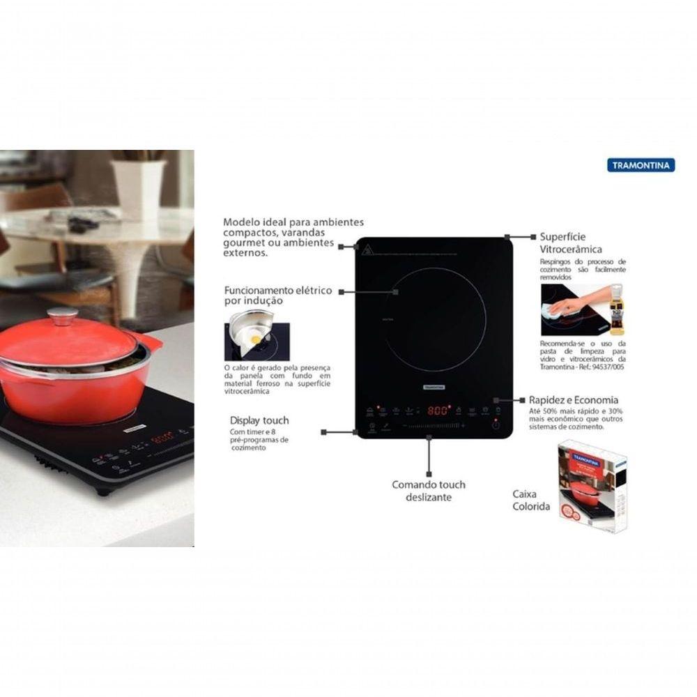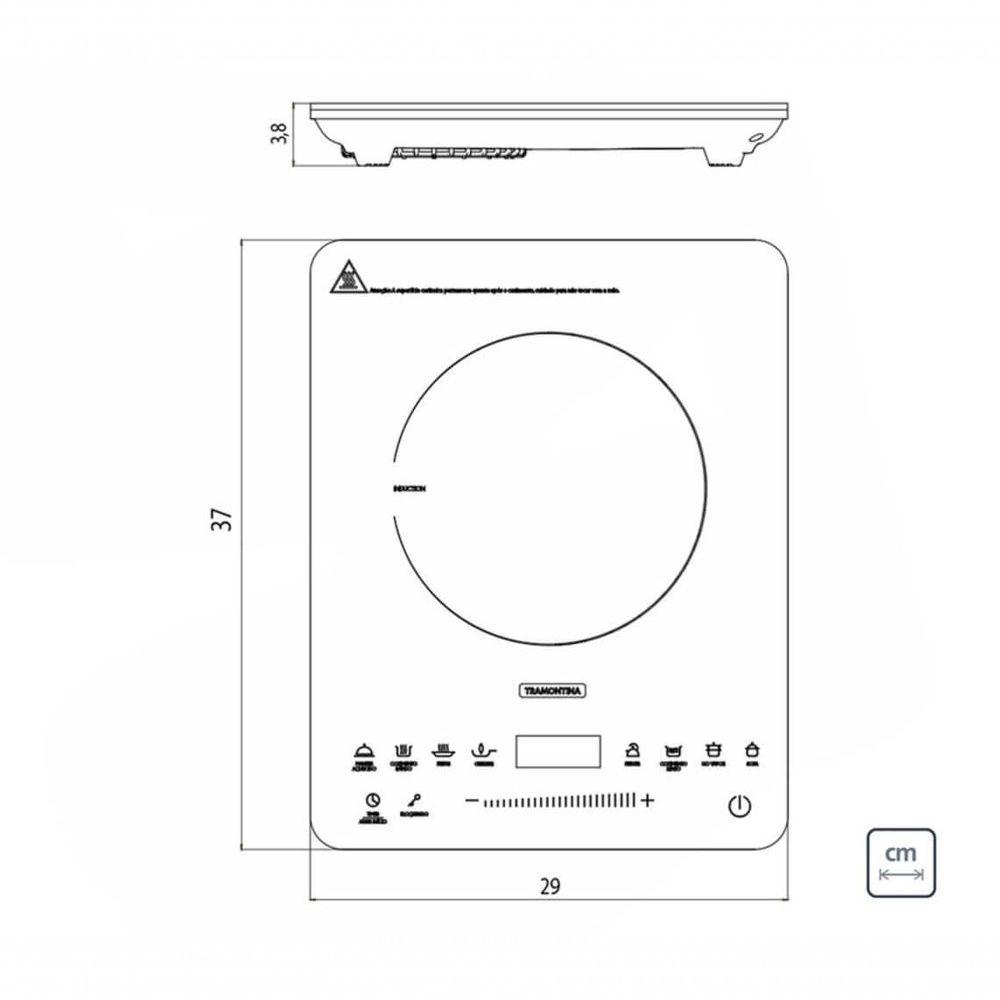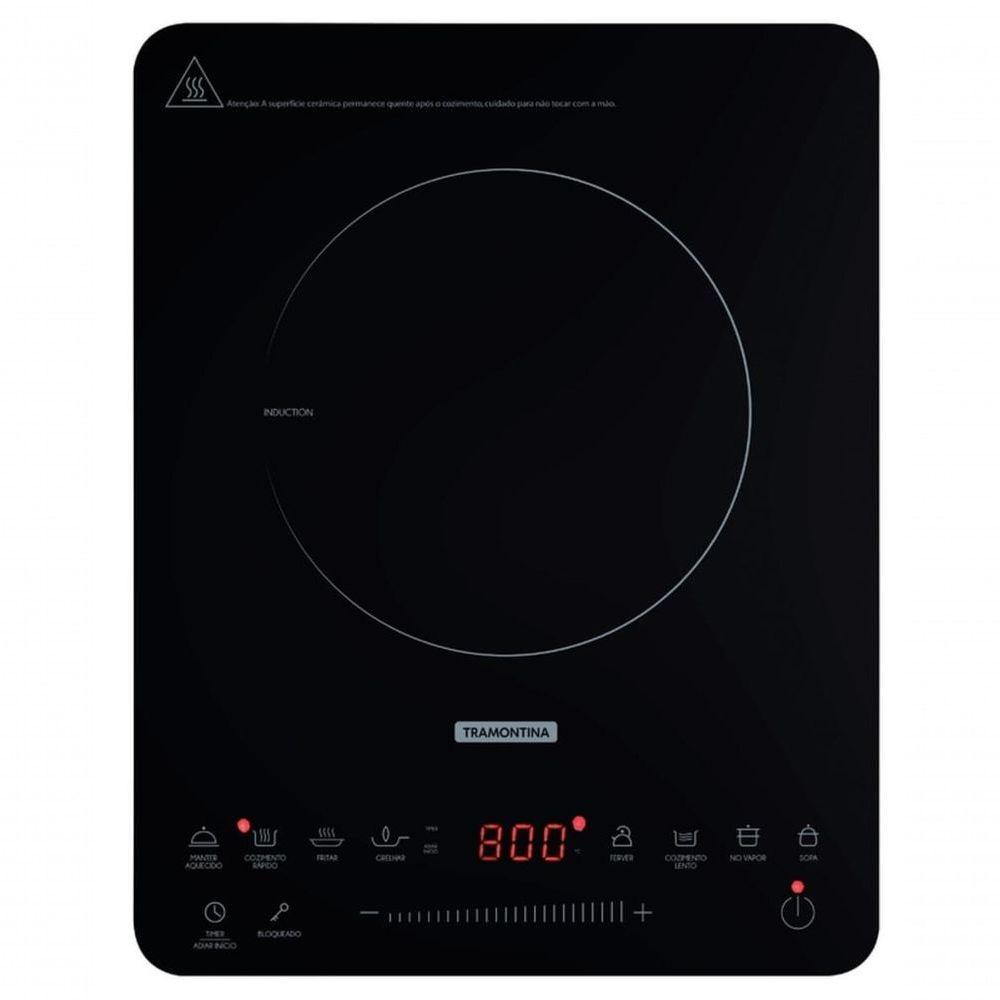 Cooktop Portátil Por Indução Tramontina Slim Touch Ei 30 220 VO Cooktop Portátil por Indução Tramontina Slim Touch EI 30 com 1 Área de Aquecimento e Comando Touch 220 V vai elevar o nível da sua cozinha. Com design moderno e tecnologia de ponta, ele torna o dia a dia mais prático e cheio de estilo. O aquecimento por indução só acontece quando panelas com fundo de material ferroso são colocadas sobre a área marcada, transferindo o calor diretamente para a panela e mantendo a superfície do cooktop em temperatura ambiente, o que evita riscos de queimadura e garante mais . Fácil de usar, conta com painel touch slider para seleção de temperatura e oferece 8 funções pré-programadas, proporcionando mais praticidade no preparo das receitas e menor consumo de energia em comparação a outros sistemas. Um produto funcional e sofisticado que transforma sua experiência na cozinha.Recomendações de Uso:Modo de uso: O Cooktop Portátil por Indução funciona ;em 220 V, não é bivolt. Não utilize o cooktop com panelas de diâmetro superior a 260 mm. Não utilize o cooktop sobre superfícies metálicas como por exemplo, pias e bancadas de aço inox. Não bloquear as aberturas de entrada e saída de ar, a fim de evitar danos no aparelho. O cooktop portátil por indução, não deve ser instalado embutido. Nunca utilizar a mesa vitrocerâmica como superfície de trabalho ou para apoiar objetos. Se for percebida qualquer rachadura na mesa vitrocerâmica, desligar imediatamente o produto e desconectar da rede elétrica. Pessoas que utilizam marca-passo e próteses metálicas devem consultar um médico antes de utilizar o cooktop por indução. Colocar sempre a panela no centro da área de aquecimento. Para o correto funcionamento do cooktop é necessário que o fundo das panelas contenha materiais de indução magnética, ou seja, metal ferroso. As panelas mais indicadas são as de aço inox ou de ferro. As panelas utilizadas no cooktop por indução devem ter o fundo plano, para que fiquem em com toda a área de aquecimento. Utilize um imã para verificar se a panela é adequada para o cooktop por indução. Se o imã for atraído pela base da panela, esta é apropriada para este tipo de aparelho. Panelas que não devem ser utilizadas: barro, vidro, alumínio, cerâmica, cobre e outros materiais não magnéticos. A limpeza da superfície vitrocerâmica deve ser realizada sempre com ela fria. Entretanto, quando objetos plásticos, folhas de alumínio, e alimentos que em sua composição contenham açúcar, entrarem em com a superfície vitrocerâmica aquecida, será necessário retirar estes resíduos enquanto ela estiver quente, utilizando uma esponja macia umedecida com água. Após a superfície vitrocerâmica esfriar, poderá não ser possível remover estes resíduos derretidos (açúcar, plástico ou papel alumínio). Para uma limpeza perfeita a Tramontina disponibiliza a venda da pasta de limpeza, para polir e remover manchas em superfícies de vidro / vitrocerâmicas.- Foto meramente ilustrativa.Informações Adicionais:- Timer: Sim;- Tensão: 220 V;- Comando: Touch;- Frequência: 50 / 60 Hz;- Bloqueio de painel: Sim;- Mesa: Vidro vitrocerâmico;- Booster (potência extra): Não;- Indicador de calor residual: Não;- Funcionamento: Elétrico por indução;- Desligamento automático de : Sim;- Panelas: Com fundo em material ferroso (fundo que atrai imã).Níveis de temperatura: 8, com 8 funções:- Sopa;- Fritar;- Ferver;- Grelhar;- No Vapor;- Manter Aquecido;- Cozimento Lento;- Cozimento Rápido.Áreas de aquecimento:- 1 x Ø 200 mm: 2,0 kW.