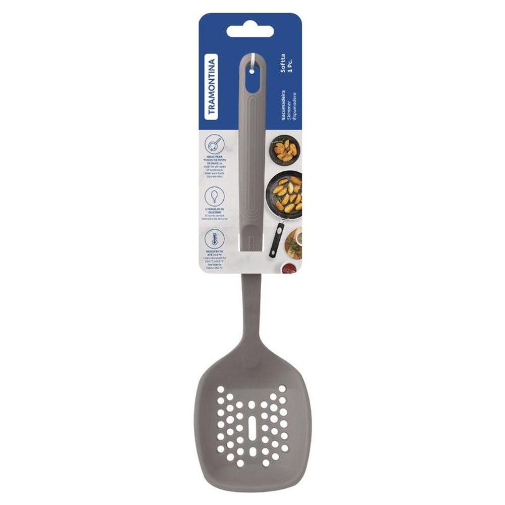 Escumadeira Tramontina Softta Cinza Em Silicone