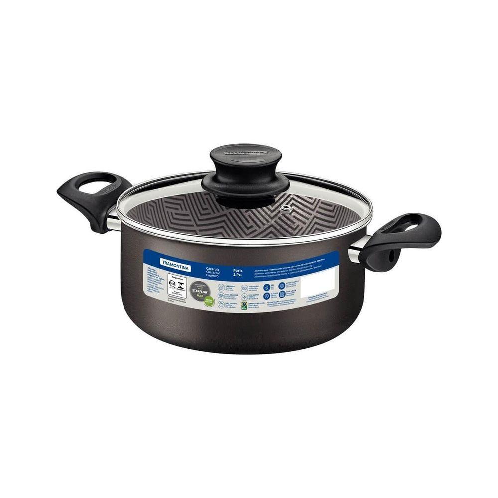 Caçarola Tramontina Paris 20cm Em Alumínio Com Revestimento Antiaderente Com Tampa De Vidro Chumbo