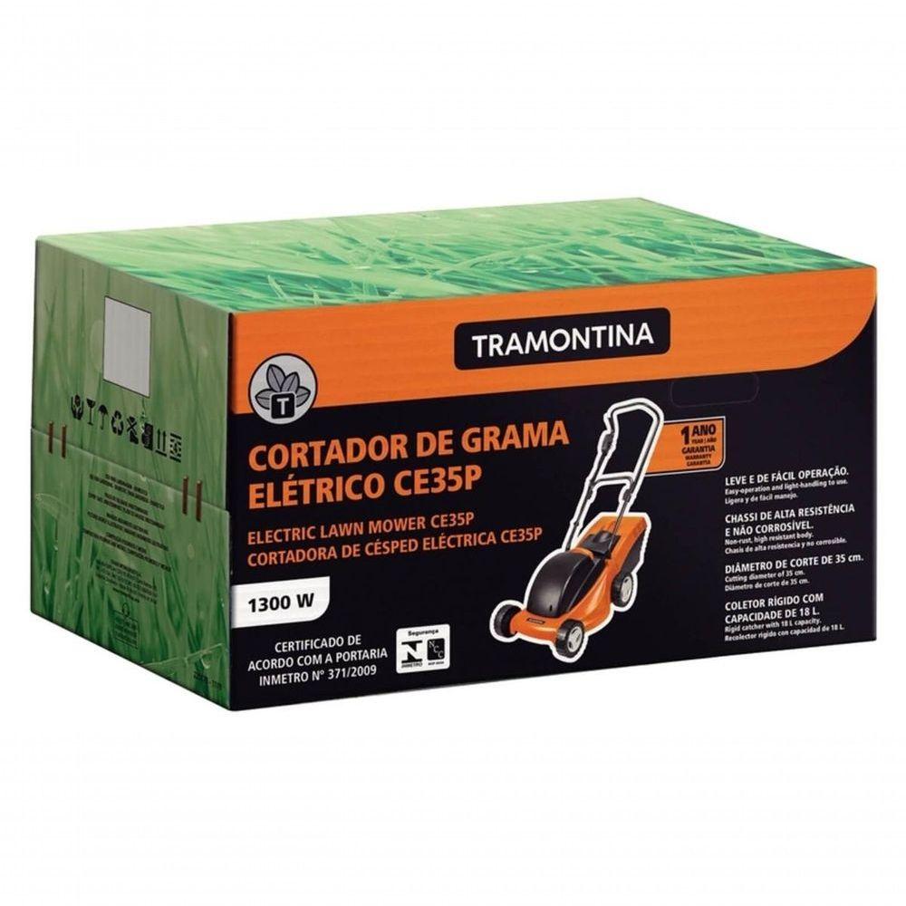 Cortador De Grama Elétrico Tramontina Ce35p Em Plástico Com Coletor Rígido 1300w 220vCom o Cortador de Grama Elétrico Tramontina CE35P 1300 W 220 V, o seu jardim ficará impecável em qualquer estação. Com diâmetro de corte de 350 mm, coletor rígido e chassi em plástico, ele é a solução prática e eficiente para manter todos os tipos de gramado bem aparados. Leve e de fácil manuseio, garante operação confortável e segura, além de facilitar o e o armazenamento. Um equipamento moderno e funcional, que transforma a manutenção do jardim em uma tarefa simples e prazerosa, deixando o espaço perfeito para encantar a família e os amigos.Recomendações de Uso:Para qualquer operação de manutenção e controle, o cabo elétrico deve estar desligado da tomada. Nunca trabalhe com o cortador sob chuva ou em gramados molhados e utilize-o sempre durante o dia ou com boa iluminação. Inspecione o cabo elétrico periodicamente. Nunca remende o mesmo. Recomenda-se que as peças de reposição sejam do mesmo modelo e da marca Tramontina.Antes do uso: Antes de usar o equipamento, leia atentamente o manual de uso e manutenção. Retire do terreno pedras, tocos e outros objetos. Durante o uso, mantenha crianças e animais à distância do cortador quando ele estiver em operação.Modo de uso: Antes de ligar o equipamento, verifique se a tensão do cortador está de acordo com a tensão da rede elétrica. Para a sua e para evitar que o cabo elétrico se desconecte do plug, enquanto o trabalho estiver sendo executado, conecte o cabo elétrico ao fixa-cabo do cortador de grama. Em gramados muito altos, procure fazer primeiro um pré-corte da grama com a regulagem de corte alto e somente depois o corte na altura definitiva. Isso facilita o trabalho e não sobrecarrega o motor. Durante o trabalho, use sempre calçados fechados. Não permita que pessoas inexperientes usem o cortador sem antes ler o manual de instruções. Sempre, após um impacto mais forte com algum obstáculo, a lâmina deve ser retirada e examinada cuidadosamente. Se houver necessidade, deve ser trocada por outra nova. Procure conduzir o cabo elétrico por trás do cortador e sempre pelo lado já cortado da grama. Evite acúmulo de grama embaixo do cortador. Para descarte dos produtos e embalagens siga as orientações de reciclagem vigentes.Após o uso: ;Limpe o cortador usando escova ou um pano umedecido com água. Nunca despeje água sobre o cortador. Quando não utilizado, o cortador deve ser armazenado fora do alcance das crianças.- Foto meramente ilustrativa.Informações Adicionais:- Produto fabricado no ;- Diâmetro de corte de 350 mm;- Cesto coletor rígido de 18 litros;- Alça para facilitar o ;- Braço metálico, com isolamento;- Chassi plástico de alta resistência;- Interruptor de duplo acionamento;- Área de corte indicada de m²;- Rede de Assistência Técnica em todo o ;- Motor com 1300 W de potência, 220 V, 60 Hz;- Três alturas de corte: 23 mm, 38 mm e 53 mm;- Fixa-cabo, evita que o cabo elétrico desconecte do plug;- Lâmina posicionada acima do nível do chassi, evitando que objetos sejam lançados em direção ao operador e pessoas próximas;- Peças metálicas possuem pintura eletrostática a pó, que tem uma melhor apresentação visual e maior proteção contra oxidação.