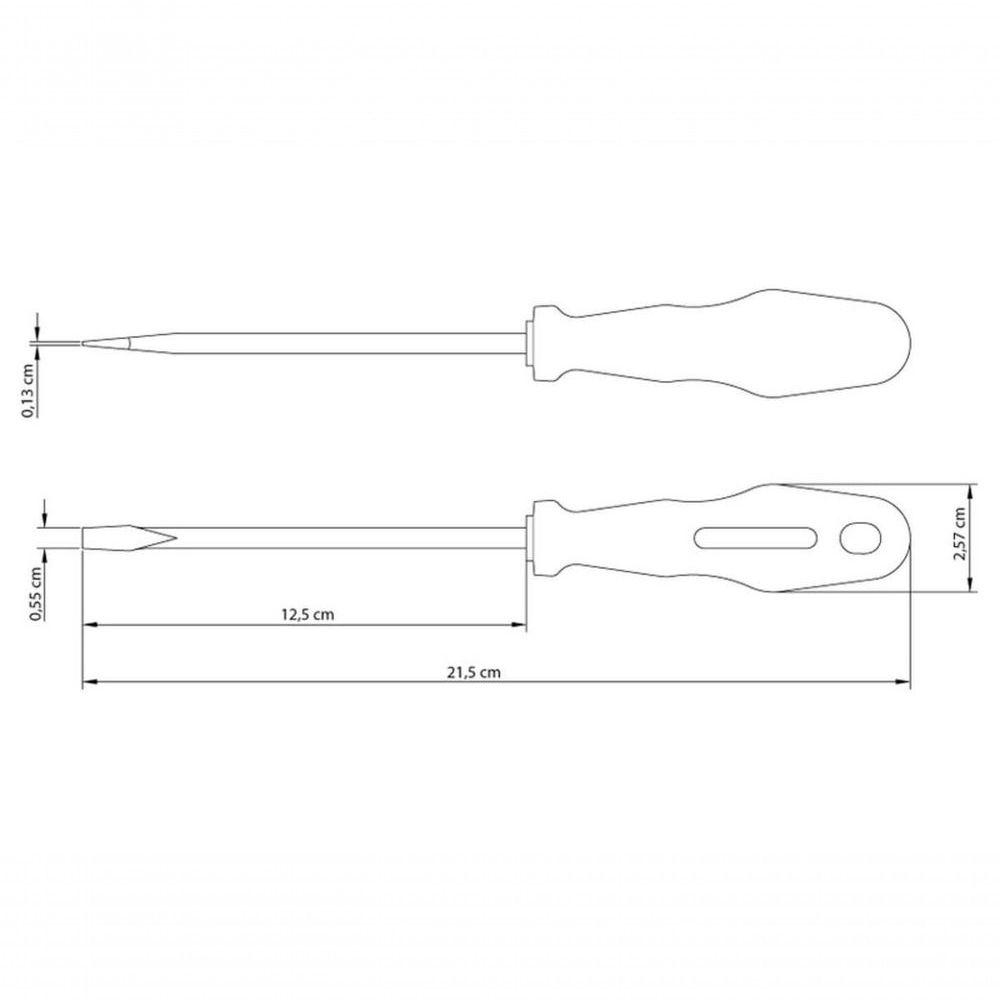 Chave De Fenda Tramontina Master Yellow Com Ponta Chata 3/16x5"Os pequenos reparos em casa ou no trabalho ficam muito mais simples com a Chave de Fenda Tramontina MASTER Yellow com Ponta Chata 3/16x5 Polegadas. Produzida com haste em aço especial temperado e acabamento niquelado, garante resistência e durabilidade para o uso diário. Seu cabo em polipropileno injetado proporciona firmeza e conforto no manuseio, tornando cada tarefa mais prática e precisa. Um item indispensável para a sua caixa de ferramentas.Recomendações de Uso:Modo de uso: ;Use óculos, luvas e outros equipamentos de proteção de acordo com a tarefa a ser executada. Utilize chaves de fenda isoladas, identificadas pela marcação V, quando for necessário trabalhar em locais com corrente elétrica. Importante: nestes casos, inspecione a integridade da isolação elétrica, e, se aparecerem trincas na isolação, suspenda o uso imediatamente. Utilize chaves com ponta adequada para cada tipo de fenda, para realizar a tarefa de forma mais rápida e segura. Respeite o torque estabelecido por norma para cada bitola. Não utilize as chaves de fenda como formão ou alavanca. Não altere as dimensões da ponta para obter outro perfil. Armazene em limpo e seco.- Foto meramente ilustrativa.Informações Adicionais:- Acabamento niquelado;- Haste em aço especial temperado.- ;Cabos injetados com material de alta resistência;- ;As ferramentas são produzidas e testadas conforme normas específicas;- ;Os dimensionais das pontas são verificados com gabaritos padrão, calibrados e certificados;- As hastes das chaves de fendas são testadas em máquinas de ensaios ;específicas, para verificar o perfeito balanço entre resistência mecânica e dureza.