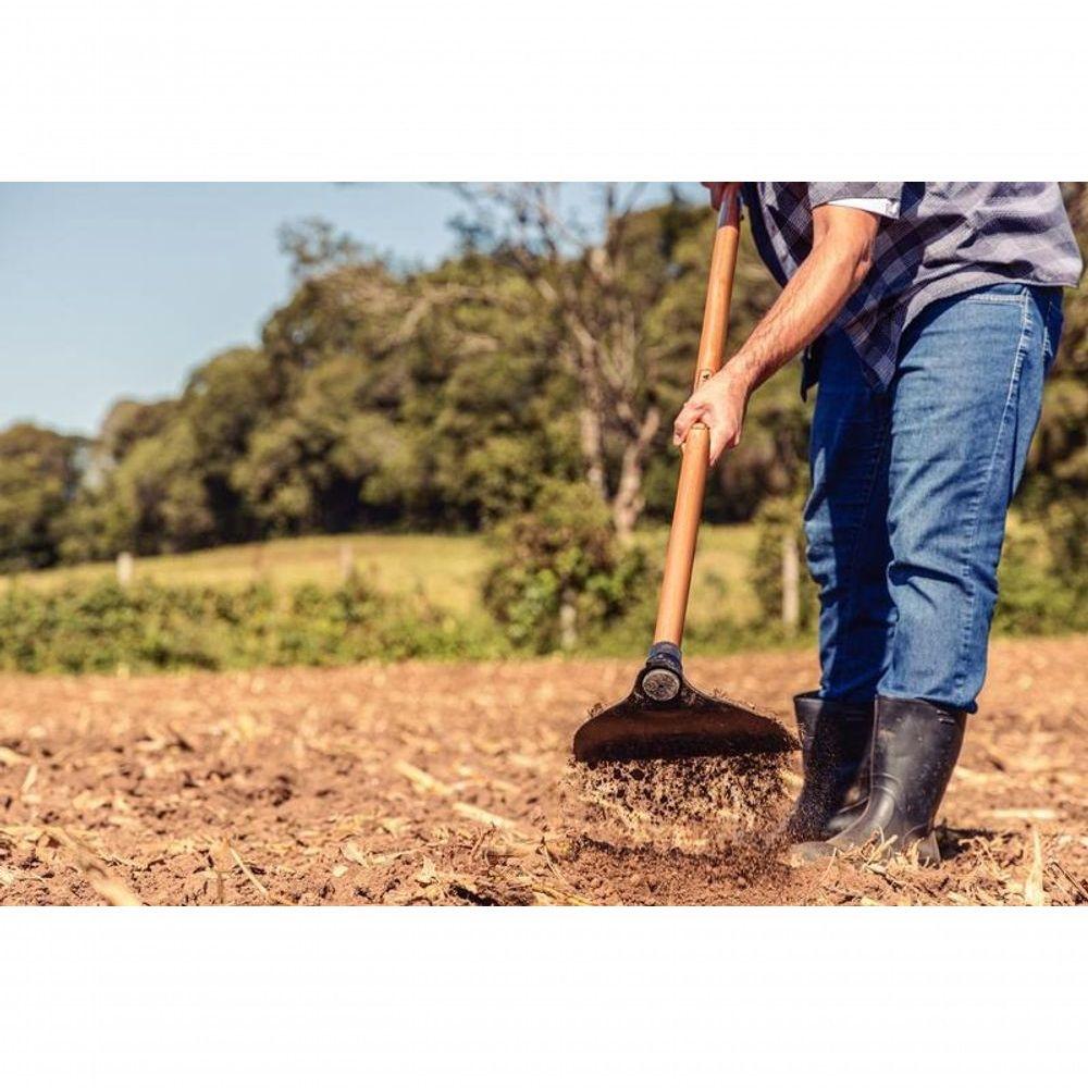 Enxada Canavieira Goivada Tramontina Com Cabo De Madeira 130cmRealize suas atividades com mais praticidade e desempenho utilizando a enxada canavieira goivada Tramontina em aço com cabo de madeira 130 cm. Produzida em aço carbono especial com pintura eletrostática a pó, ela oferece alta resistência à oxidação e excelente durabilidade. Seu cabo em madeira de origem renovável, com 130 centímetros de comprimento, garante um manuseio confortável e . Com a Tramontina, você trabalha com mais eficiência e qualidade em todas as etapas!Recomendações de Uso:Modo de uso: Utilizada para cavar e revolver o solo, incorporando adubos e corretivos. Ainda auxilia na modelagem de canteiros e na capina de ervas daninhas. ;Para descarte dos produtos e embalagens siga as orientações de reciclagem vigentes.- Foto meramente ilustrativa.Informações Adicionais:- Possui olho de 38 mm de diâmetro;- Fabricada em aço carbono especial de alta qualidade;- A enxada é leve, que gera menos esforço físico do usuário e proporciona maior produtividade;- Recebe pintura eletrostática a pó, que tem uma melhor apresentação visual e maior proteção contra oxidação;- A tinta utilizada na pintura é isenta de metais pesados na sua composição, o que minimiza o impacto ambiental;- O cabo de 130 cm desta ferramenta, além de possuir ótima resistência, é produzido com madeira de origem renovável;- A enxada é temperada em todo o corpo da peça, proporcionando maior resistência e menor desgaste durante o uso;- A lâmina possui tamanho e sua afiação é feita em máquinas automatizadas, proporcionando excelente durabilidade do fio;- Cabo com acabamento envernizado, para um melhor acabamento e apresentação do produto. A camada protetora em verniz incolor realça sua tonalidade, concedendo brilho e um toque mais liso ao produto;- Lâmina com ângulo fechado em relação ao cabo: indicado para raspagem do solo, facilitando a remoção de ervas daninhas com sistema radicular superficial, raspagem de resíduos de obras e outros materiais aderidos a uma superfície;- O sistema de encabamento com bucha plástica proporciona excelente fixação da enxada, evitando que os cabos se soltem durante o uso. A bucha absorve a contração da madeira, mantendo o cabo sempre firme, e auxilia na absorção do impacto durante o uso.