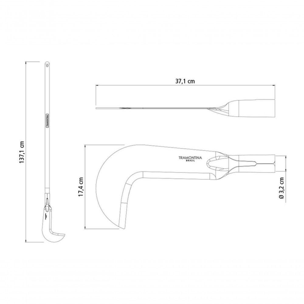 Foice Roçadeira Tramontina Em Aço Com Cabo De Madeira 110cmTenha mais agilidade e qualidade no corte com a foice roçadeira Tramontina em aço com cabo de madeira 110 cm. Produzida em aço carbono, conta com lâmina resistente e afiada, garantindo eficiência e durabilidade. Seu cabo de madeira com 110 centímetros proporciona manuseio confortável e , tornando o trabalho mais prático e produtivo.Recomendações de Uso:Modo de uso: Utilizada na agricultura e na horticultura para corte de pasto e capoeira, desbaste de pequenos galhos e colheita de algumas culturas. Para descarte dos produtos e embalagens siga as orientações de reciclagem vigentes.- Foto meramente ilustrativa.Informações Adicionais:- Possui olho de 32 mm de diâmetro;- Fabricada em aço carbono especial de alta qualidade;- A lâmina é usinada em máquina de desbaste e sua afiação proporciona excelente durabilidade do fio;- A foice é temperada em todo o corpo da peça, proporcionando maior resistência e menor desgaste durante o uso;- Recebe pintura eletrostática a pó, que tem uma melhor apresentação visual e maior proteção contra oxidação;- A tinta utilizada na pintura é isenta de metais pesados na sua composição, o que minimiza o impacto ambiental;- O cabo de 110 cm desta ferramenta, além de possuir ótima resistência, é produzido com madeira de origem renovável;- Cabo com acabamento envernizado, para um melhor acabamento e apresentação do produto. A camada protetora em verniz incolor realça sua tonalidade, concedendo brilho e um toque mais liso ao produto.