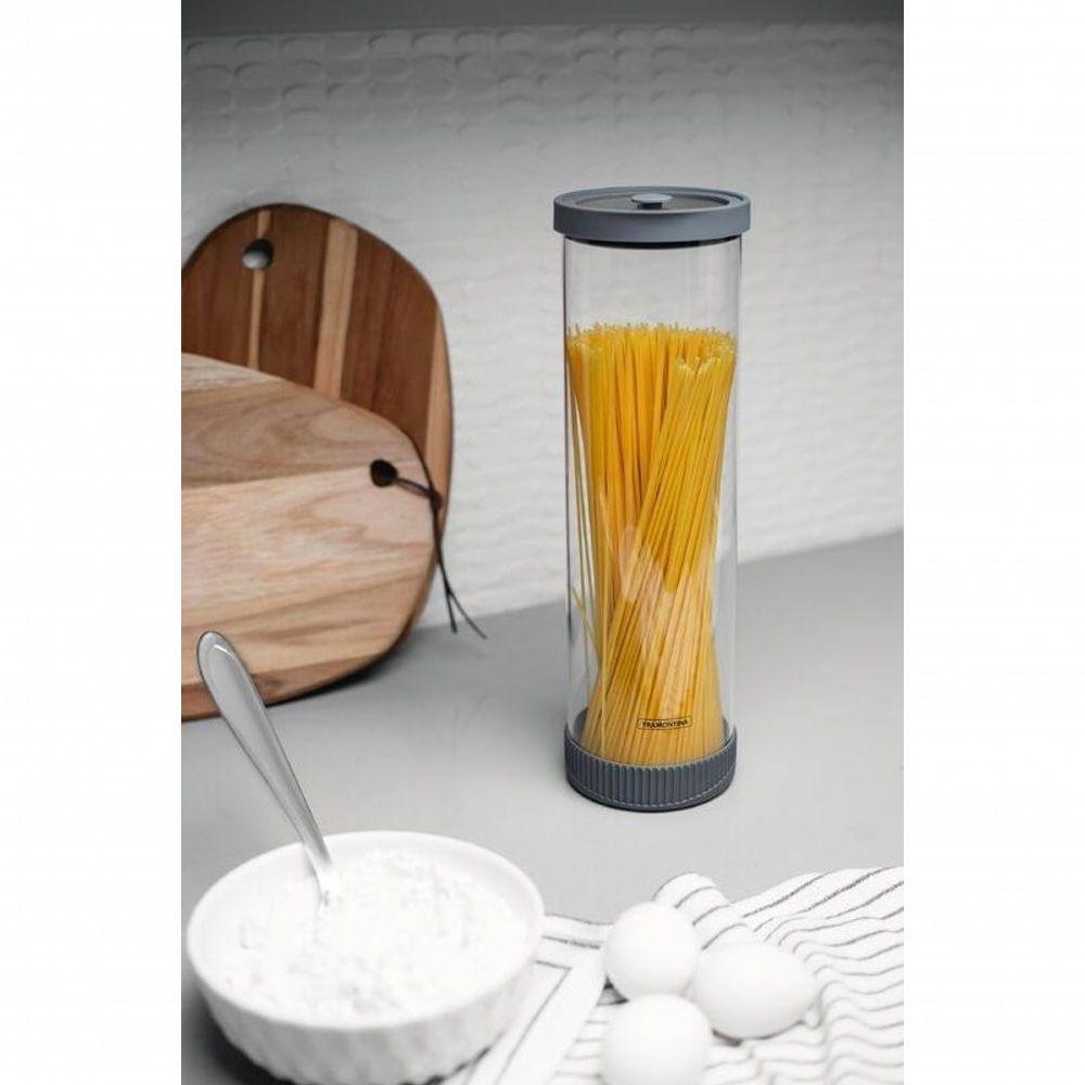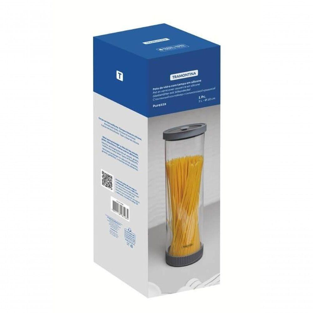 Pote De Vidro Hermético Tramontina Em Borossilicato Com Tampa 2 LitrosO pote de vidro hermético Tramontina em borossilicato com tampa mantém seus alimentos secos frescos por mais tempo, sendo a escolha ideal para quem busca funcionalidade, elegância, modernidade e organização na cozinha. Feito de vidro borossilicato resistente e livre de BPA, este pote possui uma base em silicone que aumenta a resistência contra impactos, garantindo um manuseio silencioso. Sua tampa com borda em silicone e uma tampa extra garantem o fechamento hermético, protegendo os alimentos do ambiente externo e preservando sua textura e sabor por mais tempo. Além disso, sua capacidade de empilhamento permite preencher cada cantinho do armário sem perder espaços desnecessários. Com um design altamente sofisticado e estrutura compacta, este pote adiciona um toque de elegância à sua cozinha. Simplifique a organização e o armazenamento de cereais, biscoitos, massas e sementes com os potes herméticos de vidro Tramontina!Recomendações de Uso:Modo de Uso: Confira o produto para garantir que ele não tenha sido durante o . Lave o pote de vidro com água e detergente neutro antes de usar. Em uso, mantenha o pote sempre na vertical, com a tampa voltada para cima. Por ter o corpo em vidro, requer alguns cuidados durante o uso e manuseio: Evite batidas que possam ocasionar trincas ou quebras no produto. Pode ser em máquina de lavar louças, porém, deve ser retirado as partes em silicone.- Foto meramente ilustrativa. ;Informações Adicionais:- Empilháveis;- Tampa e base em silicone;- Material: pote de vidro borosilicato incolor;- Fechamento hermético com botão para auxiliar na vedação;- Ideal para prolongar a vida útil de cereais, grãos, biscoitos e muitos outros alimentos;- Feito de vidro borosilicato, o recipiente não retém cheiro e garante vedação absoluta, retardando a perda de nutrientes e das demais propriedades de cada ingrediente.