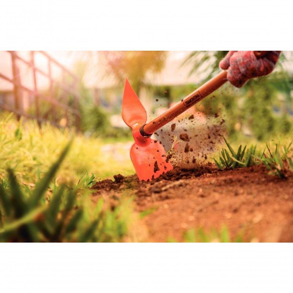 Sacho Coração Tramontina Em Aço Com Cabo De Madeira 60cmPara tornar seu trabalho de jardinagem mais prático e eficiente, conte com o sacho coração Tramontina em aço com cabo de madeira de 60 cm. Com duas extremidades funcionais, ele permite realizar diversas atividades com facilidade. Seu cabo longo proporciona maior conforto e ergonomia durante o uso, evitando dores e desconfortos. Com a Tramontina, suas tarefas ficam muito mais simples e produtivas!Recomendações de Uso:Modo de uso: Utilizado na agricultura, horticultura, fruticultura e jardinagem para cavar e revolver o solo, incorporando adubos e corretivos. Auxilia ainda na modelagem de canteiros, na abertura de valos e sulcos no solo e outras utilizações semelhantes às enxadas. É a ferramenta ideal para cuidar do jardim e realizar trabalhos em canteiros estreitos. Para descarte dos produtos e embalagens siga as orientações de reciclagem vigentes.- Foto meramente ilustrativa.Informações Adicionais:- Possui olho de 29 mm de diâmetro;- Fabricado em aço carbono especial de alta qualidade;- Produto leve, que gera menos esforço físico do usuário e torna o trabalho mais prazeroso;- Recebe pintura eletrostática a pó, que tem uma melhor apresentação visual e maior proteção contra oxidação;- O cabo de 60 cm desta ferramenta, além de possuir ótima resistência, é produzido com madeira de origem renovável;- O sacho é temperado em todo o corpo da peça, proporcionando maior resistência e menor desgaste durante o uso;- O sistema de encabamento com bucha plástica proporciona excelente fixação do sacho, evitando que os cabos se soltem durante o uso. A bucha absorve a contração da madeira, mantendo o cabo sempre firme, e auxilia na absorção do impacto durante o uso.