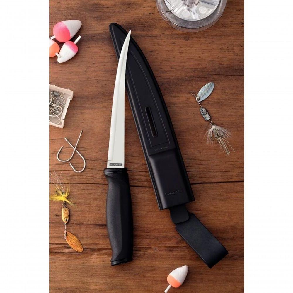 Faca Esporte Inox 6 Polegadas FishA Tramontina tem facas para todos os tipos de aventura. Modelosaltamente resistentes possuem lâminas de aço inox com recursosespecíficos para camping, pesca, mergulho e campo. As facas sãoacompanhadas de bainha para o facilitando o manuseio eoferecendo total . Facas esporte Tramontina. A escolha certapara sua aventura.Recomendações de Uso:- Antes do uso: Antes de utilizar o , remova as eventuais etiquetas e lave-o com água quente e detergente.- Modo de uso: Durante a lavagem use somente esponja macia, outros tipos de produtos, como palha de aço, poderão riscar ou prejudicar o brilho do utensílio. Enxágue bem a peça a fim de remover totalmente os resíduos dos produtos de limpeza. Após a lavagem enxugue o utensílio pois as substâncias químicas contidas na água poderão causar manchas. Sempre que possível use água quente, pois renova o brilho do utensílio. Evite o da peça com superfícies quentes, pois poderá provocar a descoloração do produto. Quando usar a máquina de lavar louça, recomendamos retirar o utensílio logo que tenha terminado o ciclo enxaguar, a fim de que os mesmos sejam secados manualmente.- uso e adequado: Tenha cuidado ao Manusear produtos cortantes e perfurantes e mantenha-os fora do alcance de crianças.- Foto meramente ilustrativa.Informações Adicionais:- Lâmina em aço inox, com maior durabilidade do fio devido ao tratamento térmico.- Cabo em polipropileno, tem muito mais resistência e durabilidade.- Permanece bonito por muito mais tempo.
