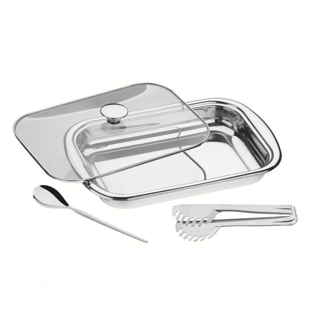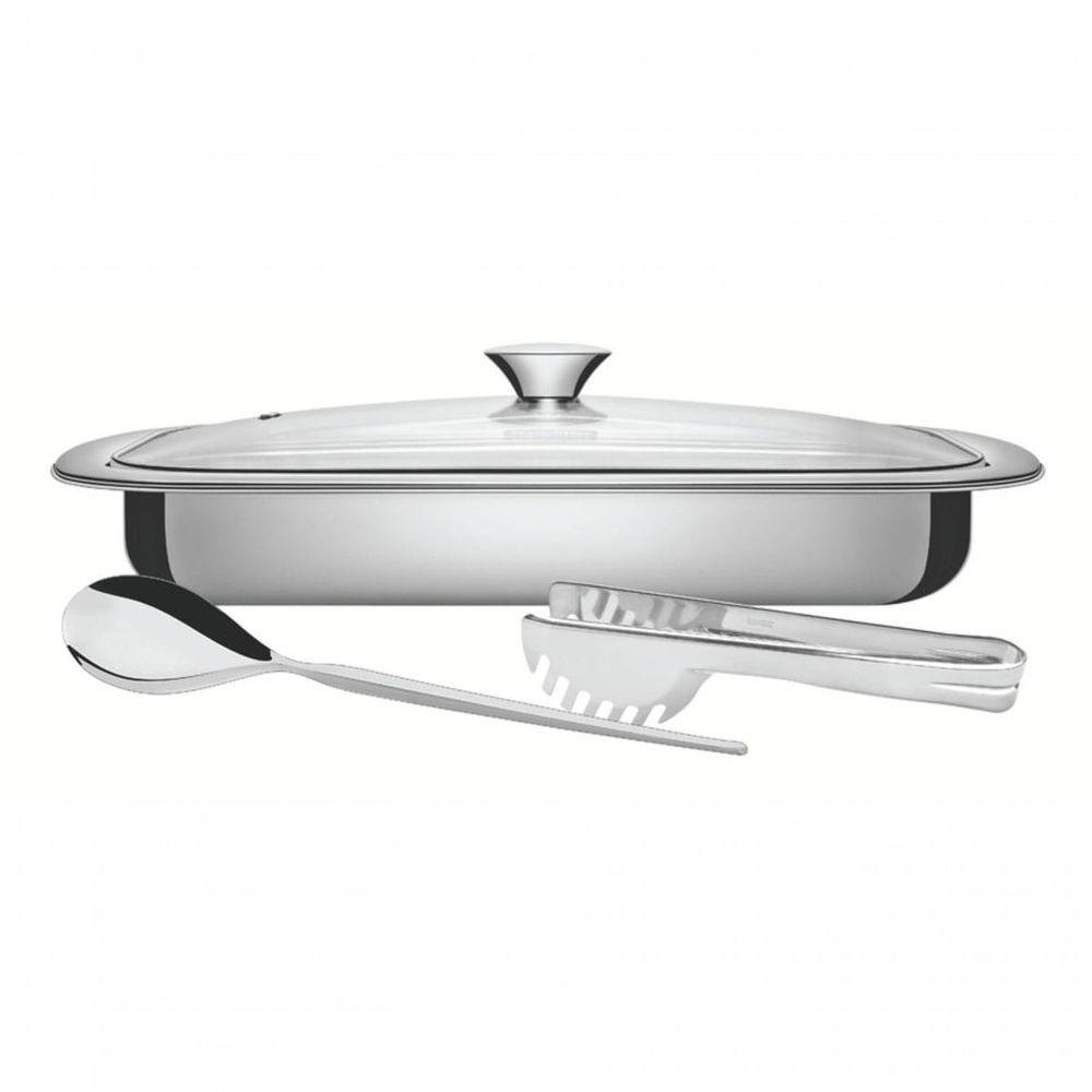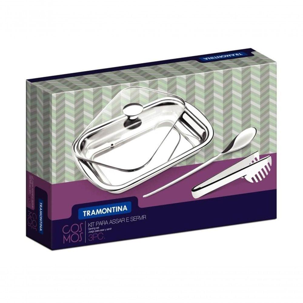 Jogo Para Assar E Servir Tramontina Cosmos Aço Inox E Tampa De Vidro 3 Peças