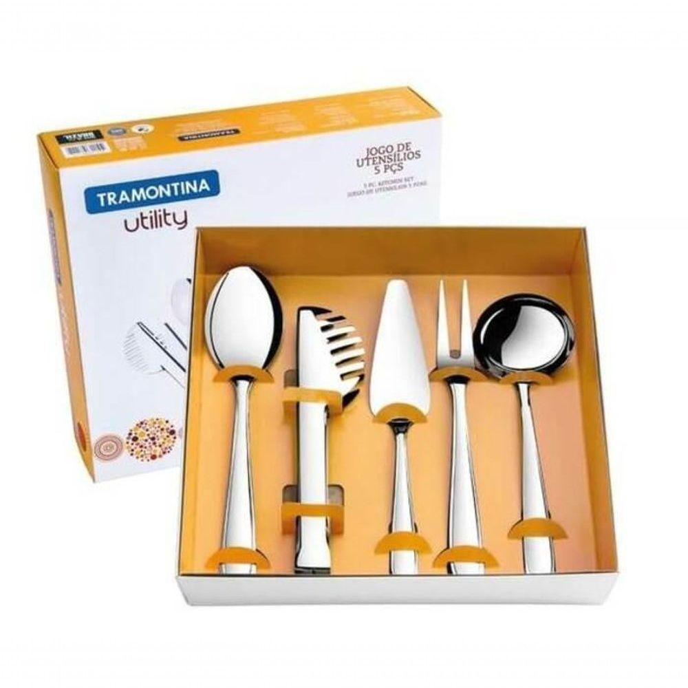 Jogo De Utensílios Tramontina Utility Em Aço Inox 5 Peças