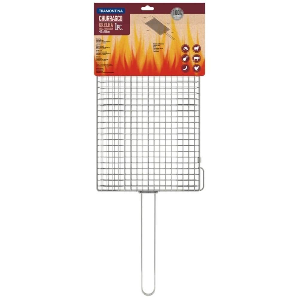 Grelha Tramontina Churrasco 76x28,6cm Em Aço InoxQuando o momento é de celebração, pode ter certeza: é hora de um Churrasco. Uma tradição que começou nos Pampas e hoje faz parte do cardápio de todo o , conquistanto também o mundo. E é claro que a Tramontina não esqueceu de suas raízes, por isso preparou uma linha completa de produtos com toda a praticidade, beleza e qualidade para fazer um bom Churrasco. Linha CHURRASCO.Recomendações de Uso:Modo de uso: antes da primeira utilização, remova as ponteiras de proteção e lave a grelha usando apenas esponja e detergente ou sabão neutro, seque-a. Antes de colocar o alimento para assar, verifique o fechamento. Tenha cuidado para não virar a grelha quando ela estiver aberta. Não sobrecarregue a grelha, pois isso pode provocar deformações no produto. Retire o alimento com auxílio de um utensílio. É importante que a limpeza seja realizada imediatamente após o uso e que não permaneçam resíduos de alimentos na grelha. Caso o alimento esteja aderido, recomendamos o uso de escovas com cerdas de aço Tramontina que irão facilitar a limpeza. Sempre lave usando esponja e detergente ou sabão neutro. Seque a grelha imediatamente após a lavagem para evitar aparecimento de utilizar utensílios quentes, tenha cuidado redobrado. Se necessário utilize proteção para as mãos e mantenha-os fora do alcance das crianç meramente ilustrativa.Informações Adicionais:Grelha em aço inox, com suportes na extremidade para apoiar e facilitar a utilização da com formato que permite pendurar o produto.Permanece bonita por muito mais tempo.