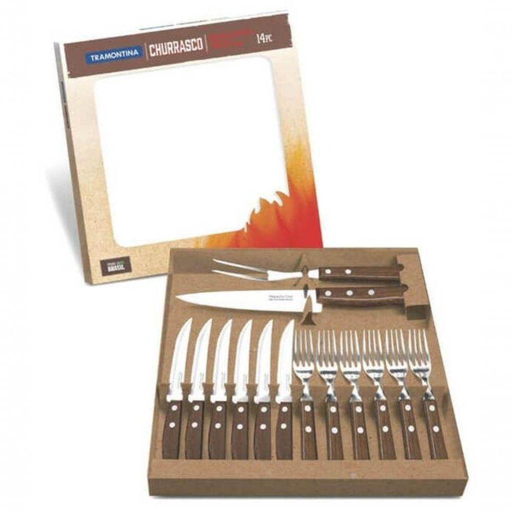 Jogo De Churrasco Tramontina Cabo De Madeira Natural 14 Peças