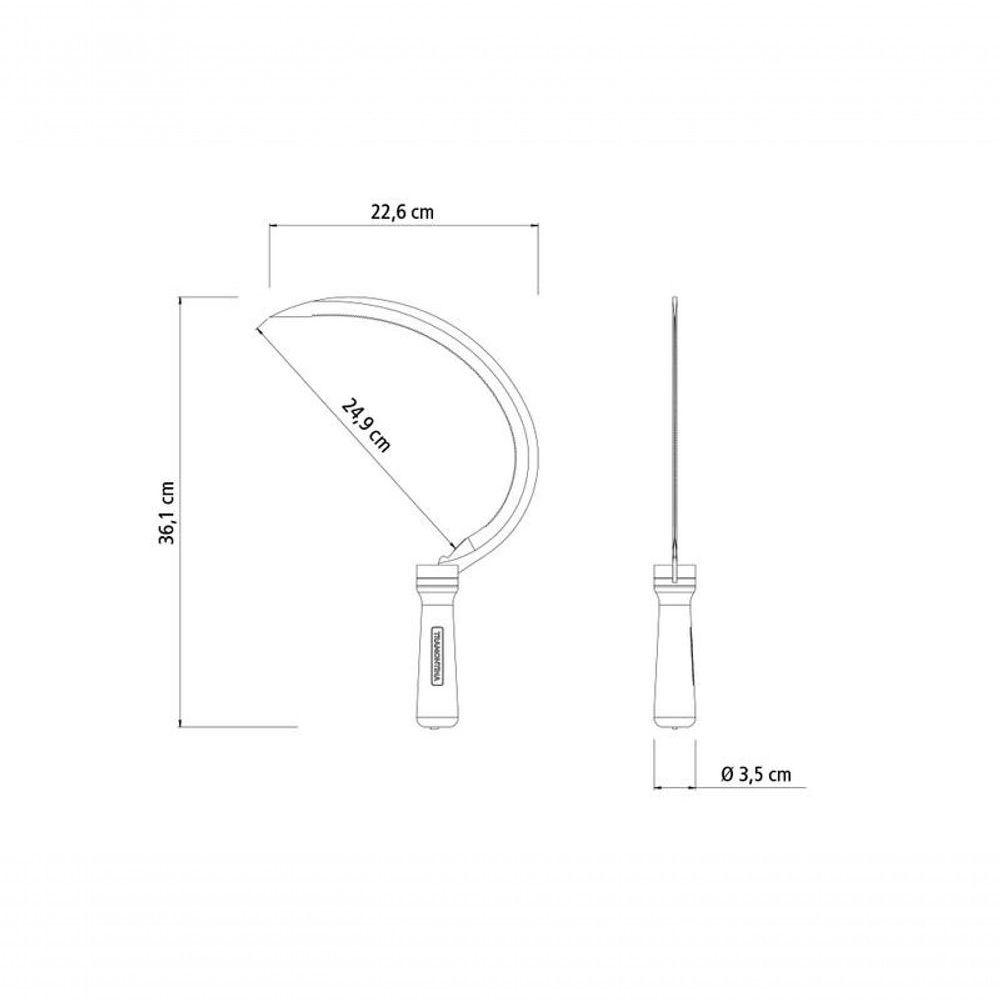 Foicinha Com Dentes Grande Tramontina Em Aço Cabo De MadeiraA foicinha metálica com dentes Tramontina com cabo de madeira é perfeita para facilitar as atividades na agricultura e horticultura, permitindo o corte de pasto e a colheita de diversas culturas de cereais, como arroz e trigo. Seus dentes afiados garantem cortes precisos e eficientes. Indicada para áreas maiores, conta com uma ampla área de corte, proporcionando maior rendimento e produtividade no trabalho.Recomendações de Uso:Modo de uso: Utilizada na agricultura e na horticultura para corte ou colheita de soja, arroz e trigo. ;Para descarte dos produtos e embalagens siga as orientações de reciclagem vigentes.- Foto meramente ilustrativa.Informações Adicionais:- Fabricada em aço carbono especial de alta qualidade;- A foicinha é temperada em todo o corpo da peça, proporcionando maior resistência e menor desgaste durante o uso;- O cabo de 13 cm desta ferramenta, além de possuir ótima resistência, é produzido com madeira de origem renovável;- A lâmina possui dentes e recebe acabamento envernizado e sua afiação proporciona excelente durabilidade do fio.