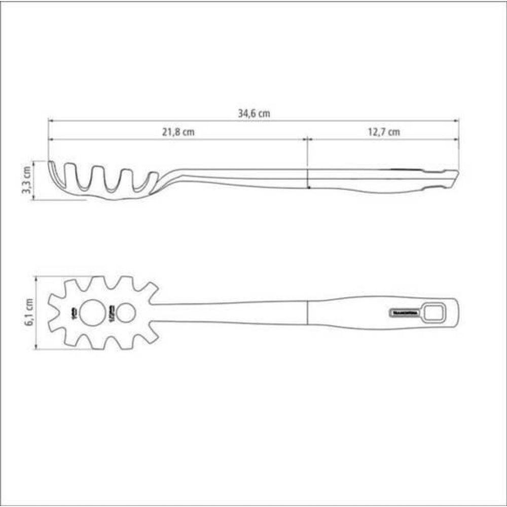 Pegador De Massa Tramontina Verano 34,5cm ônixDomingo em família é sinônimo de uma receita super tradicional: macarronada! Para este e outros momentos você tem agora o Pegador de Massa Tramontina Verano com Bojo em Nylon e Cabo de Polipropileno Ônix, que possui medidor de porções, cabo ergonômico e pode ser levado à máquina de lavar louças.Recomendações de Uso:- Antes da primeira utilização, lave bem a peça e seque-a. - Para maior durabilidade do produto recomenda-se secar bem antes de guardar, mesmo após lavagem em máquina. - Para descarte do produto e embalagem siga as orientações de reciclagem vigentes.Informações Adicionais:- Utensílio de nylon, que resiste até uma temperatura de 180 °C. - Cabo com furo passante possibilitando que seja pendurado na sua cozinha. - Utensílio ideal para uso em panelas com revestimentos antiaderentes e cerâmicos, pois não danifica o produto. - Pode ir à máquina de lavar louças facilitando seu dia a dia.- Imagem meramente ilustrativa.