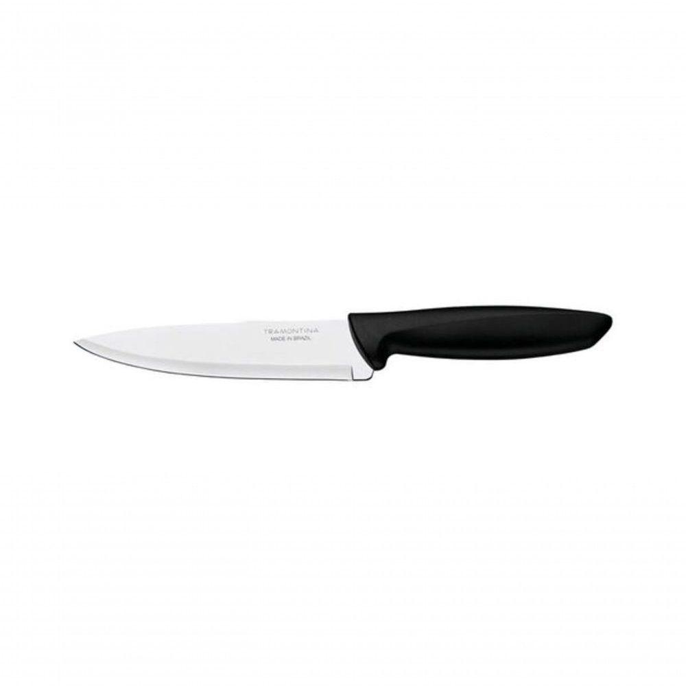 Faca Chef Tramontina Em Aço Inox 6" Preto PlenusQualidade e mais charme para a suacozinha com a linha Plenus. Versáteis e modernos, os talheres podem compor umvisual clássico, quando a opção for pelas cores sóbrias, ou alegre, se apreferência for por cores quentes e . Completa, a linha atende osdiferentes usos: do preparo dos alimentos ao de mesa. A linha Plenusvai do café da manhã ao jantar, do churrasco à mesa de queijos.Recomendações de Uso:Modo de uso: antes da primeira utilização, remova as eventuais etiquetas e lave usando apenas uma esponja macia, sabão ou detergente neutro. Outros tipos de produtos, como palha de aço, poderão riscar ou prejudicar o acabamento da peça. Enxágue cada item a fim de remover totalmente os resíduos dos produtos de limpeza, que, por serem abrasivos, podem danificar o inox. Após a lavagem enxaguar e secar bem a peça, caso contrário, as substâncias químicas da água (cloro) poderão causar manchas. Para maior durabilidade do produto recomenda-se secar bem antes de guardar, mesmo após lavagem em máquina. Evite o direto da peça com superfícies quentes, pois poderá provocar deformações ao produto. Evite atrito entre as peças durante o processo de lavagem e no armazenamento, para mantê-la sem riscos.- Tenha cuidado ao Manusear produtos cortantes e perfurantes e mantenha-os fora do alcance de crianças.- Foto meramente ilustrativa.Informações Adicionais:- Lâmina em aço inox.- Cabo de polipropileno.- a Espessura do aço e formato da peça evita deformações.- A faca recebe tratamento térmico especial, o que dá maior durabilidade ao fio.- resistente à máquina de lavar louças.