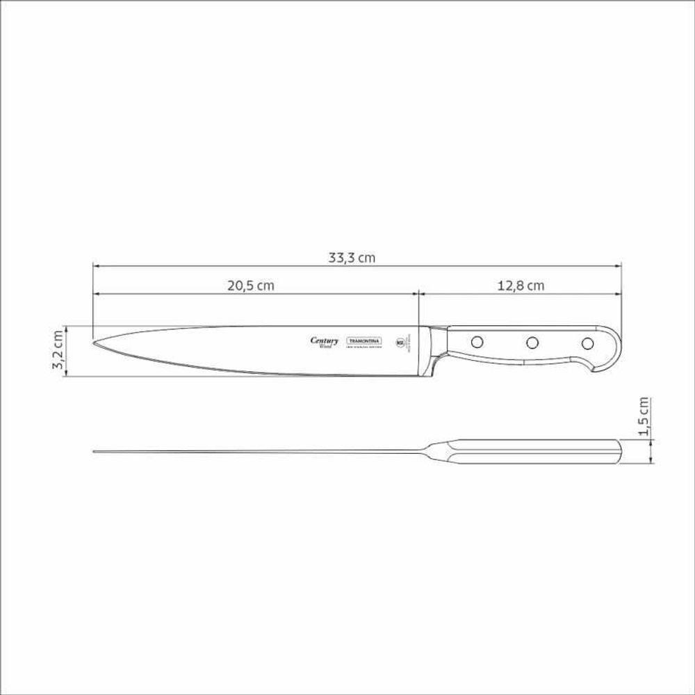 Faca Utility Tramontina 8 Century Wood CastanhoDesenvolvida com toda a qualidade Tramontina que você já conhece e confia, a Faca Utility Tramontina Century Wood, com lâmina de aço inox e cabo de madeira tratada castanho de 8 polegadas, é a escolha perfeita para chefs e entusiastas culinários. Com uma lâmina forjada de aço inox especial e um elegante cabo de madeira tratada, esta faca combina beleza e desempenho excepcionais. A lâmina desta faca é cuidadosamente forjada para proporcionar alta precisão de corte e durabilidade excepcional do fio, transformando o ato de cortar, fatiar e picar em verdadeiras obras-primas culinárias. Seu cabo de madeira tratada, fixado com rebites de aço inox, oferece maior conforto e durante o manuseio. Além de suas qualidades estéticas e funcionais, esta faca é extremamente prática, podendo ser levada à máquina de lavar louças, facilitando sua vida na hora da limpeza. Seja você um chef ou um entusiasta da gastronomia, a Faca Utility Century Wood será sua parceira perfeita para criar pratos deliciosos e impressionar seus convidados, elevando sua experiência na cozinha!Recomendações de Uso:Modo de Uso: Antes da primeira utilização, lave bem a peça e seque-a. Produto cortante e perfurante: tenha cuidado ao manusear e mantenha fora do alcance das crianças. Para maior durabilidade do produto recomenda-se secar bem antes de guardar, mesmo após lavagem em máquina. Recomenda-se o uso de tábuas de polipropileno ou madeira da Tramontina para maior durabilidade do fio da faca. Não é indicado o uso da faca para o corte de alimentos congelados. Mantenha sempre sua faca afiada utilizando os afiadores da Tramontina. Para descarte dos produtos e embalagens siga as orientações de reciclagem vigentes.- Foto meramente ilustrativa.Informações Adicionais:- Resistente a impactos e a altas temperaturas;- Cabo de madeira tratada com rebites de aço inox;- Pode ir à máquina de lavar louças facilitando seu dia a dia;- Com ponta em formato de espada, auxilia na abertura e na perfuração dos alimentos;- A lâmina forjada de aço inox especial garante um fio com maior durabilidade e precisão.