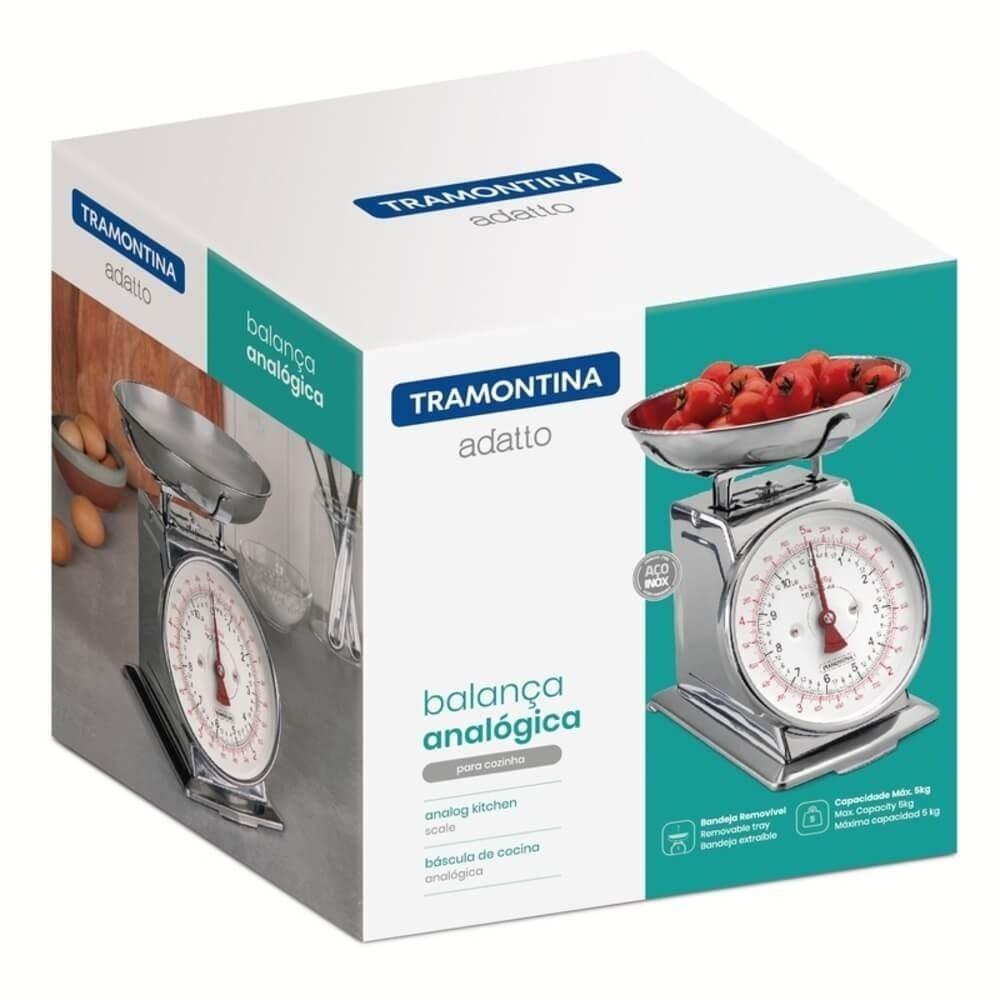 Balança Para Cozinha Analógica Tramontina AdattoA balança para cozinha analógica Tramontina Adatto é perfeita para você que quer a medida exata para o preparo das suas receitas. Seja qual for a receita, com a Tramontina a eficiência é garantida!Recomendações de Uso:Antes do Uso: Remova as eventuais etiquetas e limpe com um pano levemente úmido. Modo de Uso: Não mergulhe a balança em água e não utilize agentes de limpeza químicos/abrasivos.Informações Adicionais:- Altura: 25,2 cm;- Bandeja removível;- Capacidade máxima: 5 kg; - Coloque o produto a ser pesado centralizado sobre o prato da balança;- Manuseie sua balança com cuidado, pois batidas e quedas podem danificar o produto;- Sempre utilize a balança sobre uma superfície sólida e plana e fixe o prato no suporte previamente ao uso.- Foto meramente ilustrativa.