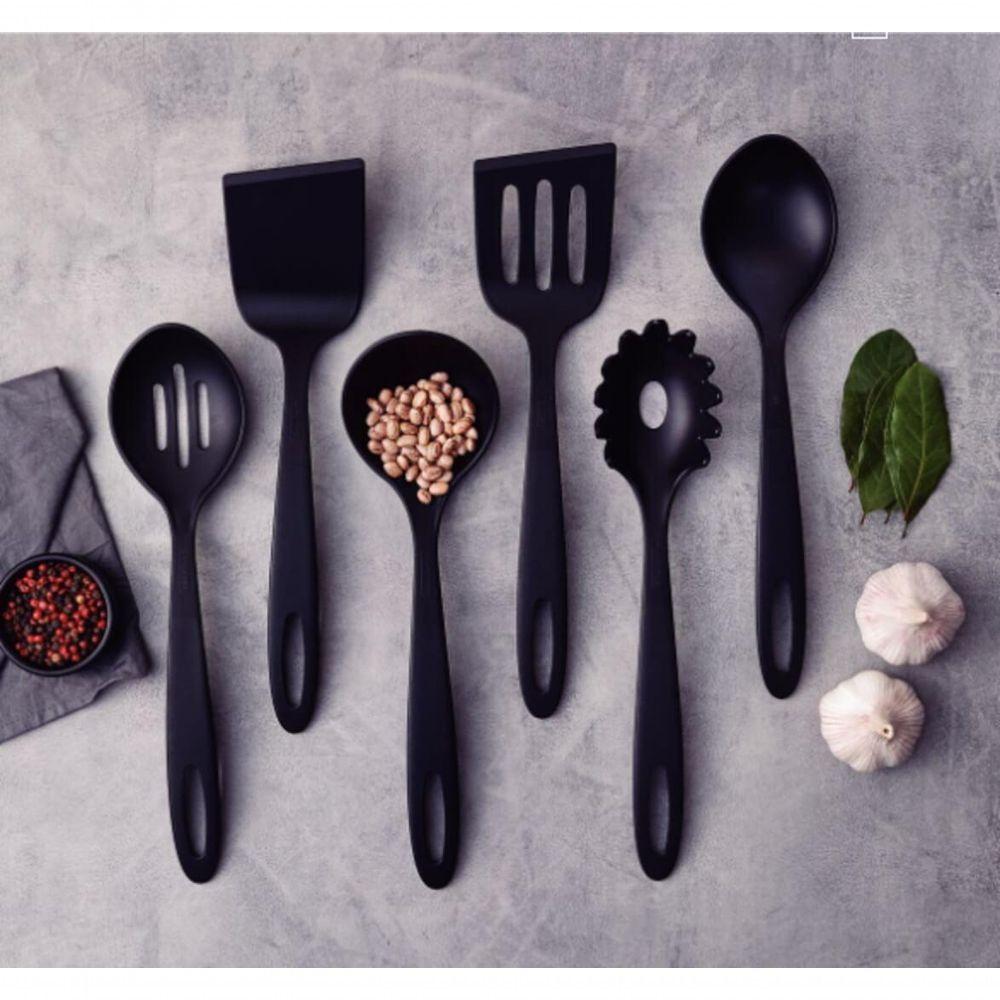 Espátula Tramontina Ability 30,2cm Em Nylon PretaA espátula Tramontina Ability em nylon preto vai deixar sua rotina na cozinha ainda mais prática. Perfeita para uso no dia a dia, ela é produzida em nylon e resistente a temperaturas de até 180°C. Seu cabo possui furo passante, possibilitando que ela seja pendurada em cozinha e ainda sirva de utensílios de decoração. Ela ainda é ideal para uso em panelas com revestimentos antiaderentes e cerâmicos, pois não os danifica e ainda pode ir à máquina de lavar louças, facilitando seu dia a dia.Recomendações de Uso:Antes do Uso: lave bem a peça e seque-a.Modo de Uso: Para maior durabilidade do produto recomenda-se secar bem antes de guardar, mesmo após lavagem em máquina. Para descarte do produto e embalagem siga as orientações de reciclagem vigentes.Informações Adicionais:- Permite uso em temperaturas de até 180 °C;- Pode ir à máquina de lavar louças facilitando seu dia a dia;- Cabo com furo passante possibilitando que sejam pendurado na sua cozinha;- Utensílio ideal para uso em panelas com revestimentos antiaderentes e cerâmicos, pois não danifica o produto.- Foto meramente ilustrativa.