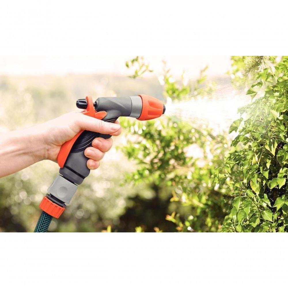 Hidropistola Para Engate Rápido Tramontina Com Jato ControlávelA hidropistola para engate rápido Tramontina multifunção oferece conforto e praticidade para cuidar do seu jardim ou horta doméstica. Produzida em plástico resistente, possui cabo anatômico e 10 tipos diferentes de jatos d’água, além de trava e regulagem da vazão na própria mão, facilitando o controle durante o uso. Funcional e versátil, essa ferramenta torna as tarefas ao ar livre muito mais práticas e agradáveis.Recomendações de Uso:Modo de uso: Utilizada para irrigar o jardim ou a horta doméstica. ;A hidropistola é a ferramenta da ponta do sistema. Pode ser conectado em mangueiras com engate rápido de 1/2", 3/4" ou 5/8". ;Água ;pode faltar, não desperdice. ;Para descarte dos produtos e embalagens siga as orientações de reciclagem vigentes.- Foto meramente ilustrativa.Informações Adicionais:- Cabo anatômico com revestimeto emborrachado;- Regulagem da vazão d'água acessível na própria mão;- Trava permite trancar a vazão de água desejada, prevenindo cansaço da mão;- Possui prático sistema de regulagem do fluxo d'água através do regulador frontal;- A hidropistola é conectada em mangueiras de 1/2", 5/8" e 3/4" através de sistema de engate rápido;- Produto fabricado com matéria-prima de alta qualidade proporcionando uma irrigação precisa e .