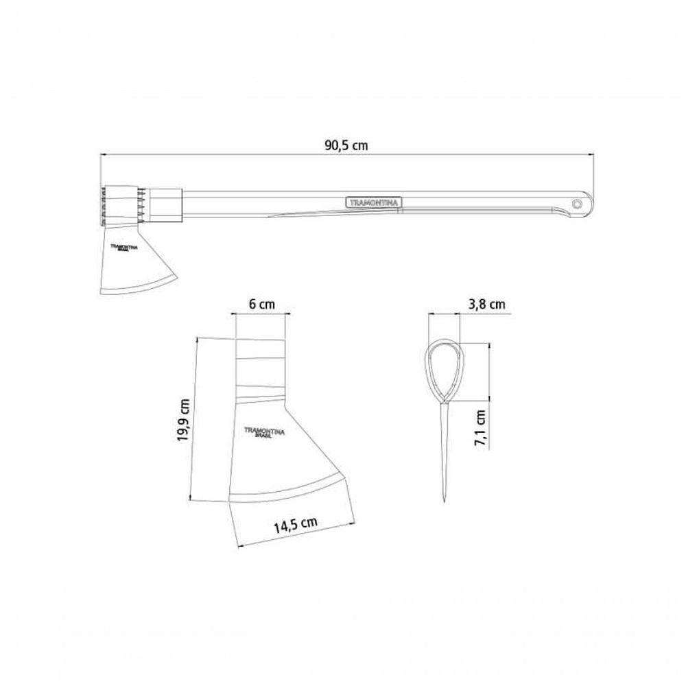 Machado Soldado Tramontina Cabeça Redonda Em Aço Com Cabo De Madeira 90cmCom o machado soldado com cabeça redonda Tramontina tamanho em aço com cabo de madeira 90 cm voce irá ; realizar os trabalhos com mais e praticidade. Fabricado para o corte de madeira, ele possui toda a alta qualidade das ferramentas Tramontina. Ele possui afiação diferenciada que garante mais durabilidade do fio. Além disso, é altamente resistente e recebe pintura eletrostática a pó, protegendo contra oxidação. Possui cabo de 90 centímetros em madeira de origem renovável com acabamento envernizado. O cabo possui encabamento com bucha plástica, sistema que absorve melhor o impacto evitando que o cabo se solte durante o uso. É uma ferramenta confortável que garante os melhores resultados.Recomendações de Uso:Modo de uso: Adequado ;para o corte de troncos de árvores e para rachar lenha. Pela praticidade de uso, os machados são muito utilizados para diversas atividades em campings, sítios e fazendas. Para descarte dos produtos e embalagens siga as orientações de reciclagem vigentes.- Foto meramente ilustrativa.Informações Adicionais:- Possui olho oval de 38 x 71 mm;- Fabricado em aço carbono especial forjado de alta qualidade;- Cabo com acabamento envernizado, para um melhor acabamento e apresentação do produto;- A camada protetora em verniz incolor realça sua tonalidade, concedendo brilho e um toque mais liso ao produto;- Recebe pintura eletrostática a pó, que tem uma melhor apresentação visual e maior proteção contra oxidação;- O cabo de 90 cm desta ferramenta, além de possuir ótima resistência, é produzido com madeira de origem renovável;- A tinta utilizada na pintura é isenta de metais pesados na sua composição, o que minimiza o impacto ambiental;- O machado é temperado em todo o corpo da peça, proporcionando maior resistência e menor desgaste durante o uso;- A lâmina possui tamanho e sua afiação é feita em máquinas automatizadas, proporcionando excelente durabilidade do fio;- O sistema de encabamento com bucha plástica proporciona excelente fixação do machado, evitando que os cabos se soltem durante o uso. A bucha absorve a contração da madeira, mantendo o cabo sempre firme, e auxilia na absorção do impacto durante o uso.