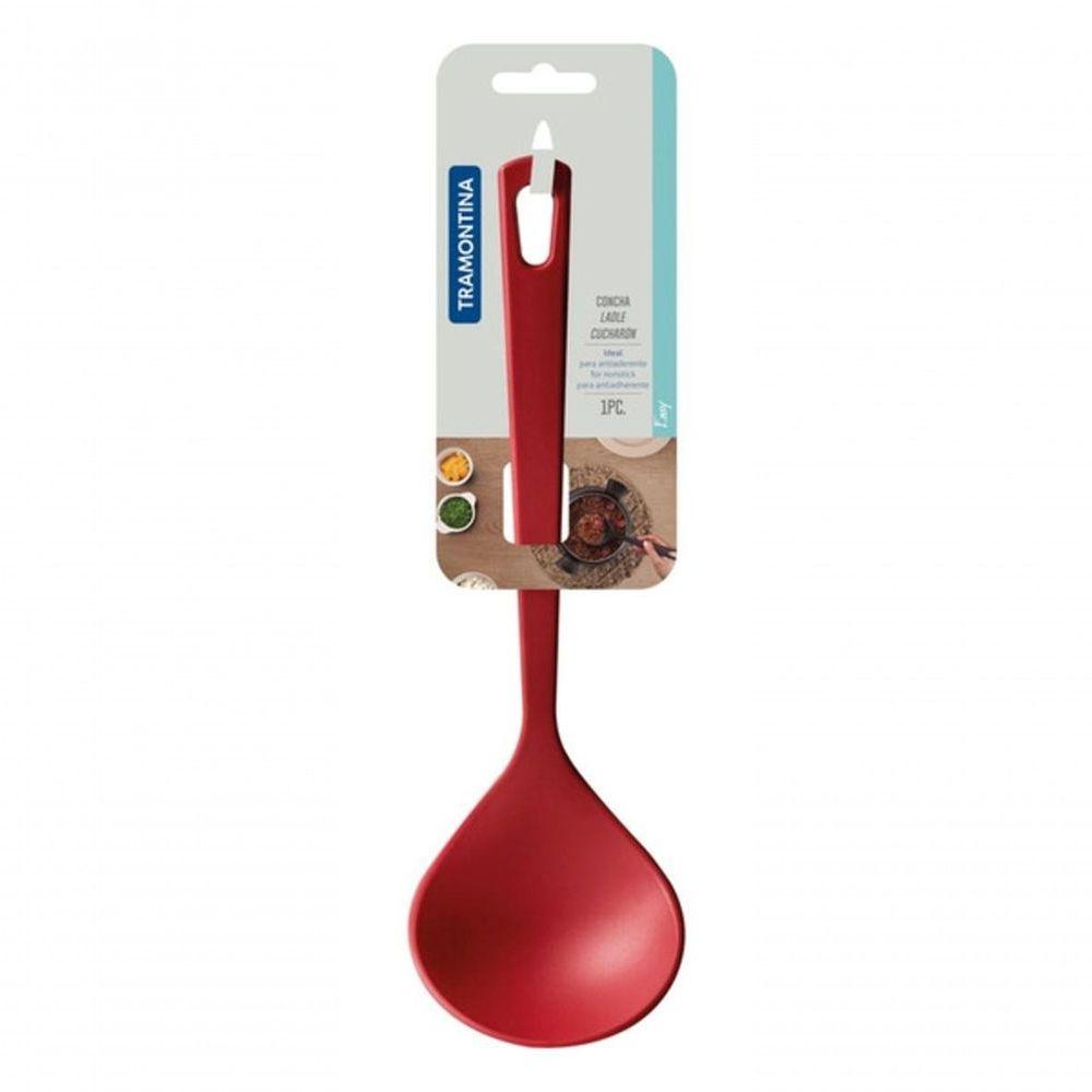 Concha Terrina Tramontina Ability 28,7cm Em Nylon VermelhaCom os utensílios da linha Easy sua cozinha ficará muito mais elegante e bonita. São utensílios práticos e eficientes para preparar as receitas com perfeição e tornar esse momento ainda mais especial. Para fazer bonito seja no preparo das suas receitas ou na hora de servir, a Concha Tramontina Preta em Nylon é a escolha certa.Recomendações de Uso:Modo de uso: antes da primeira utilização, lave e seque bem a peça. Para limpeza, use somente esponja macia e detergente neutro. Não utilize materiais abrasivos. Para maior durabilidade do produto recomenda-se secar bem antes de guardar, mesmo após lavagem em máquina.- Foto meramente ilustrativa.Informações Adicionais:- Concha de nylon.- Resistente até 180°C.- o Cabo Possui furo passante possibilitando que seja pendurado Na sua cozinha.- Utensílio ideal para uso em panelas com revestimentos antiaderentes e cerâmicos, pois não danifica o produto.- resistente à máquina de lavar louças.
