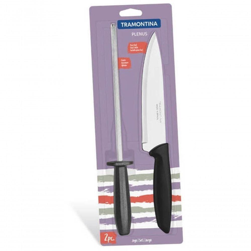 Jogo De Facas Com Chaira Tramontina Plenus 2 Peças Preto