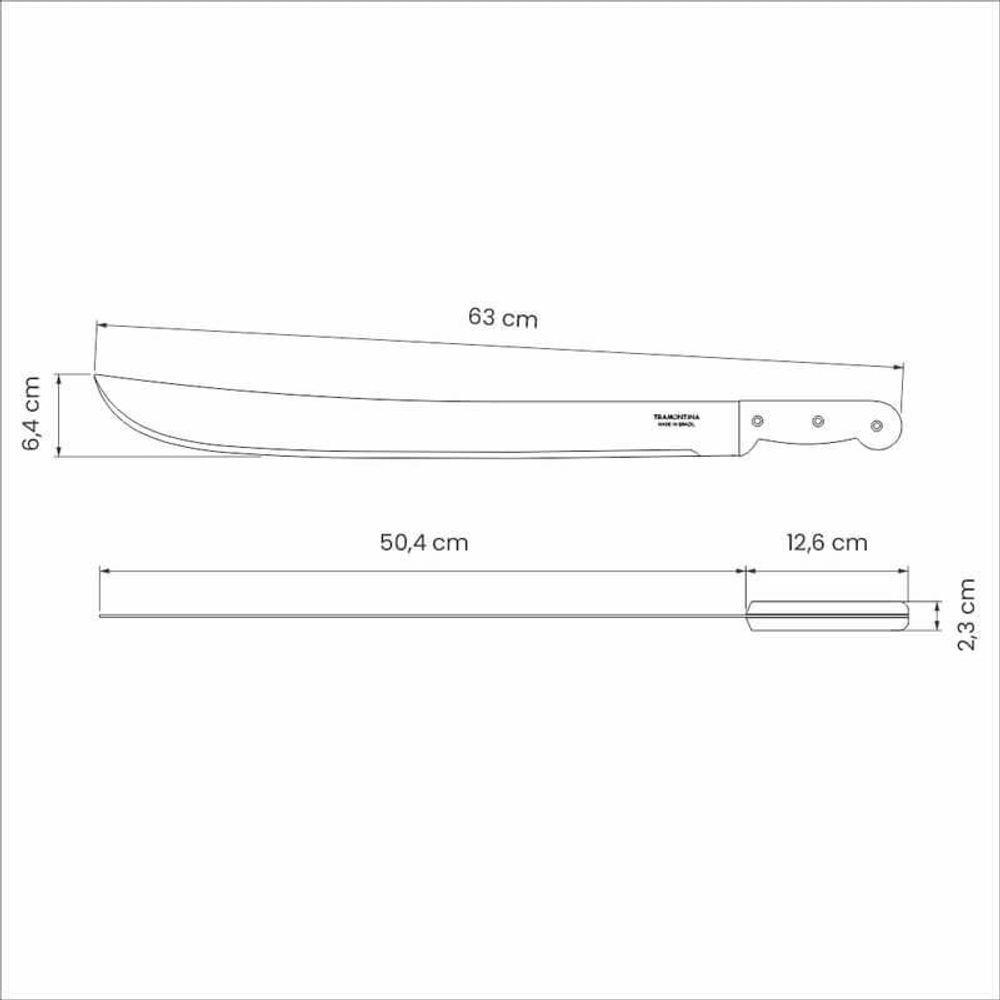 Facão Para Mato Tramontina 20" Lâmina Em Aço Carbono E Cabo PretoCom o facão para mato Tramontina com lâmina em aço carbono e cabo de polipropileno preto 20 polegadas em seu trabalho e garanta maior precisão para cortar capim e mato. Desenvolvido com lâmina em aço carbono e cabo de madeira, ele proporciona resistência e excelente poder de corte, pois conta com tratamento térmico e camada de verniz protetiva. Seu cabo é de polipropileno, tem rebites de alumínio e formato ergonômico, características que juntas o transformam em um facão robusto e de manuseio confortável. Escolha Tramontina e tenha alta qualidade na palma da sua mão!Recomendações de Uso:Modo de Uso: Tenha cuidado ao manusear produtos cortantes e perfurantes e mantenha-os fora do alcance de crianças. Para garantir a durabilidade do produto, recomenda-se lavar, secar bem e aplicar uma fina camada de óleo alimentício após cada uso. Não utilize solventes e materiais abrasivos para a limpeza. Armazene em seco. Para descarte do produto e embalagem siga as orientações de reciclagem vigentes.- Foto meramente ilustrativa.Informações Adicionais:- Rebites de alumínio;- Cabo de polipropileno rebitado que garante maior , ergonomia perfeita e conforto no manuseio;- Lâmina de aço carbono com tratamento térmico especial que proporciona maior dureza, resistência do fio e maior poder de corte;- Lamina com aplicação de uma camada de verniz como revestimento protetivo, a qual possui a função de proteção durante as etapas de , armazenamento e primeiros usos.