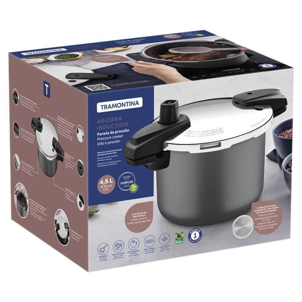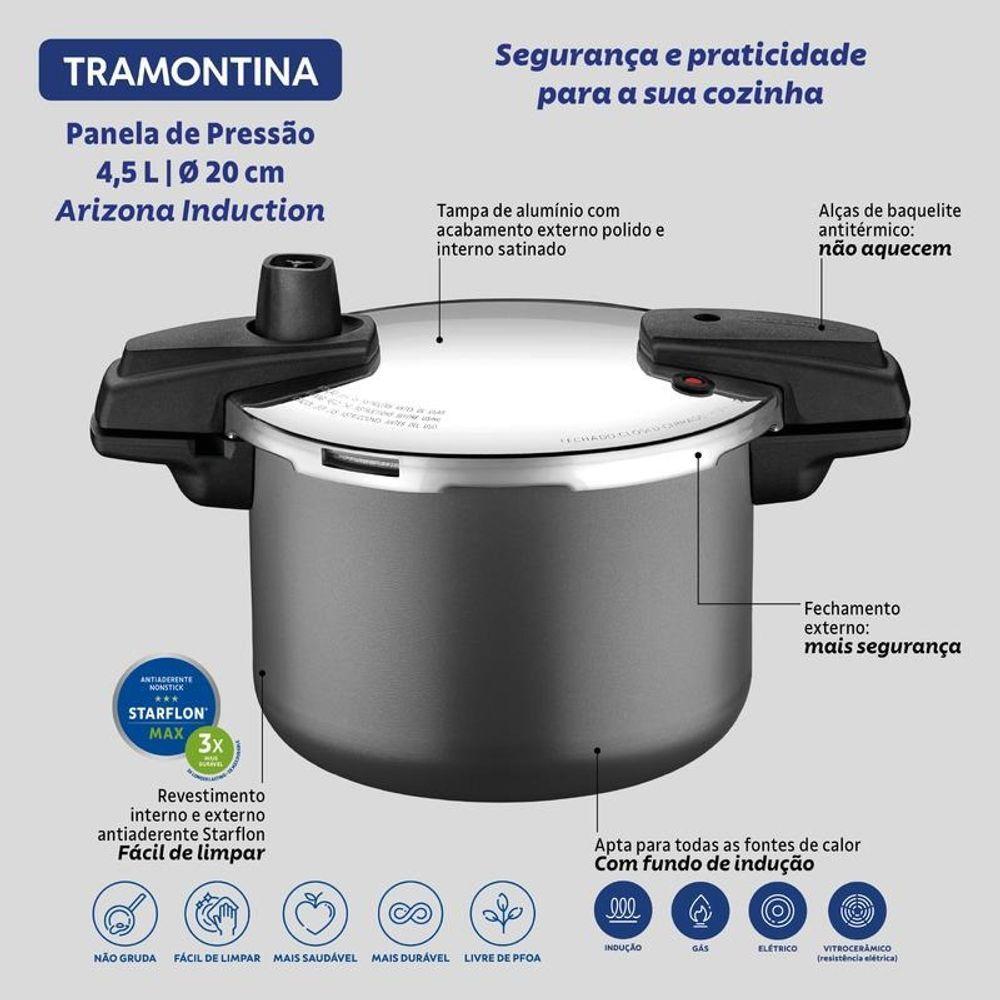 Panela De Pressão Tramontina Arizona Induction Em Alumínio Com Revestimento Antiaderente Titânio 20cm 4,5 Litros