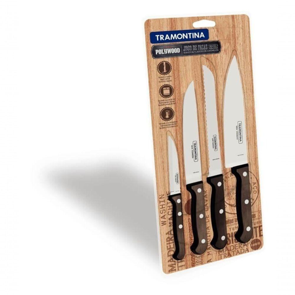 Jogo De Facas Tramontina Polywood Castanho 4 Peças