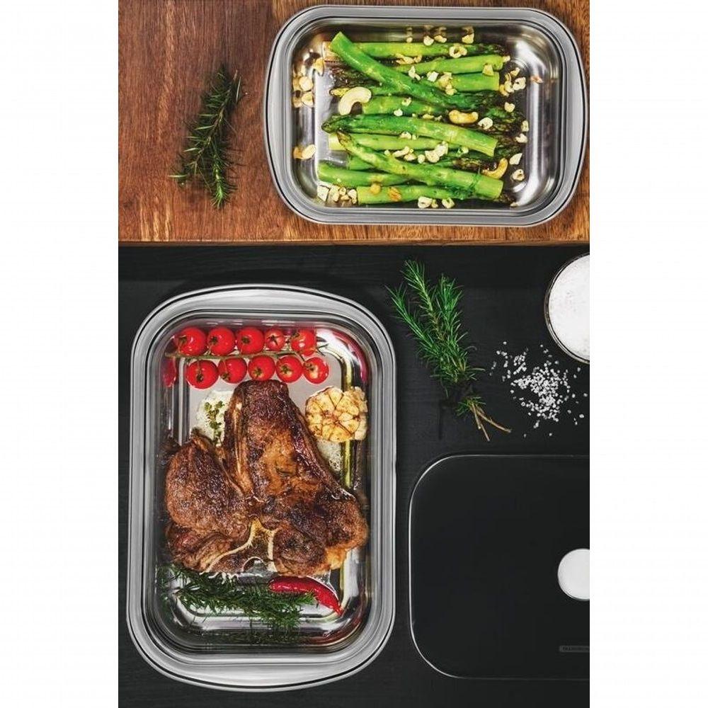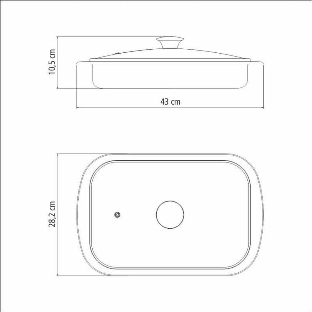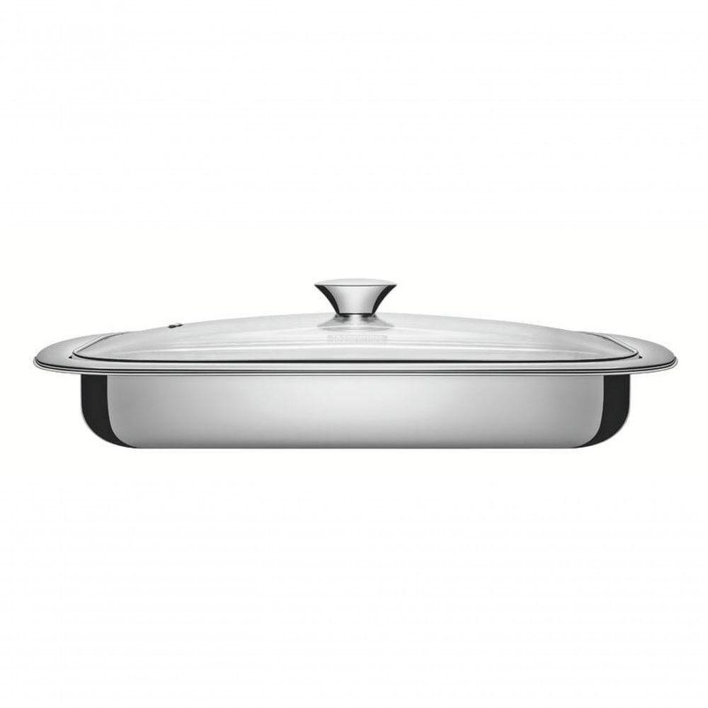 Assadeira Retangular Tramontina Cosmos 43cm Em Aço Inox Com Tampa De Vidro