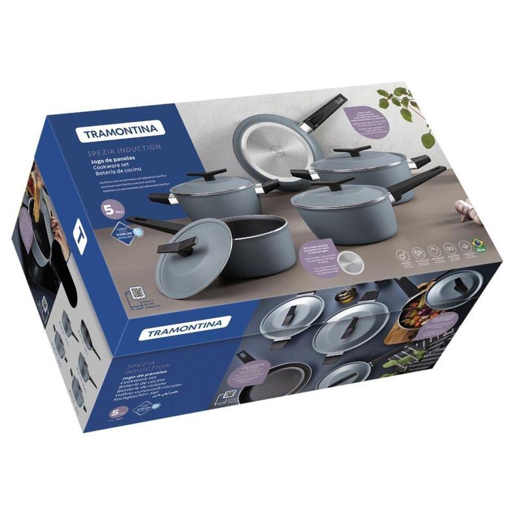 Jogo De Panelas Tramontina Spezia Induction 5 Peças Em Alumínio Com Revestimento Antiaderente Azul Ardósia