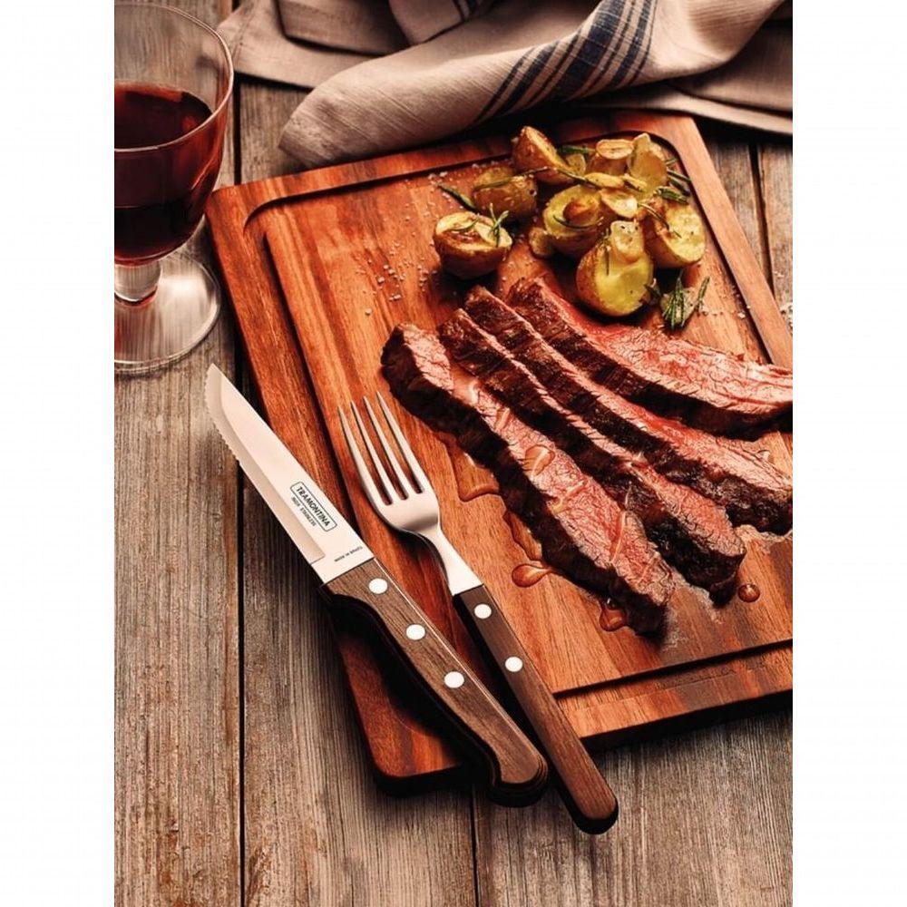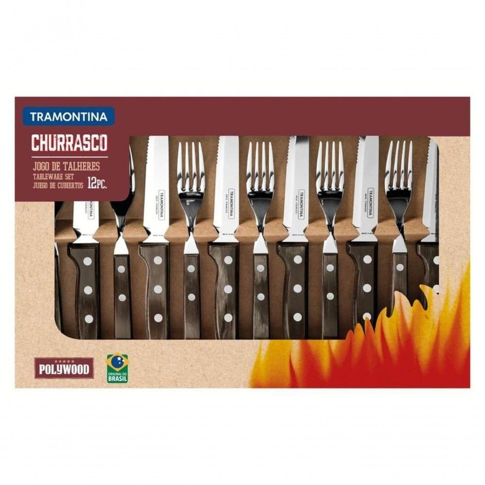 Jogo De Churrasco Jumbo Em Inox Tramontina Polywood Castanho 12 Peças