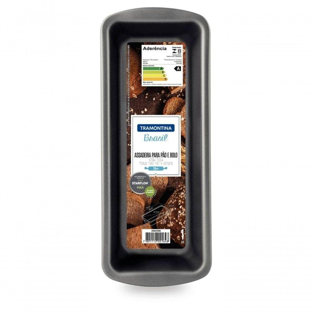 Forma Pão E Bolo Tramontina Alumínio 26cm 1,4l GrafiteA linha é fabricada em alumínio com antiaderente Starflon. São formas e assadeiras dos mais diferentes modelos para você soltar sua imaginação e cozinhar com praticidade.Recomendações de Uso:Antes do uso: Antes de utilizar o , remova as eventuais etiquetas e lave-o com água quente e de uso: Lave interna e externamente a peça, usando apenas uma esponja macia, sabão neutro ou detergente líquido. Enxugue bem com um pano seco e unte todas as partes internas com óleo ou gordura. Leve ao fogo baixo por um ou dois minutos. Deixe a peça esfriar, lave e enxugue novamente. A partir daí, você pode usar seu produto Starflon, com ou sem gordura, dependendo de sua preferência. Durante o uso evite esquentar demais o produto vazio. Use seu produto Starflon sempre em fogo baixo ou médio para reter o valor nutritivo dos alimentos e conservar o antiaderente. Evite que as chamas atinjam as laterais do produto. Os produtos com antiaderente não pode ser aquecidos a temperaturas superiores a 350°C. Para mexer ou tirar o alimento, use somente utensílios de silicone, nylon ou madeira que não cortam e não riscam a superfície dos produtos Starflon. Nunca corte alimentos diretamente no revestimento ós o uso: Evite a imersão do produto quente em água fria. Deixe o produto esfriar antes de lavar. Mesmo depois de vários usos nunca utilize produtos abrasivos na lavagem de seu antiaderente, como saponáceos ou palhas de aço. Se deixar queimar alimentos, deixe seu produto de molho em água durante algum tempo antes de lavá-la. O seu produto Starflon pode ir à máquina de lavar louça e, antes do próximo uso, o ideal é que se repita as recomendações do item Antes do uso. Ao utilizar utensílios mantenha fora do alcance de crianças. Ao manusear utensílios quentes tenha cuidado redobrado e se necessário utilize proteção para as mãos. Para sua maior ao utilizar utensílios com cabos, mantenha os mesmos sempre voltados para o centro do fogão.- Foto meramente ilustrativa.Informações Adicionais:- forma em alumínio com revestimento interno e externo em antiaderente Starflon.- Devido ao revestimento antiaderente os alimentos não grudam, proporcionando facilidade na limpeza.- Proporciona um cozimento rápido e uniforme.- Design moderno e diferenciado.- Pode ser utilizada no forno a gás e elétrico.- Pode ir à máquina de lavar louças.- Seguindo as instruções de uso, a assadeira permanecerá bonita por muito mais tempo.