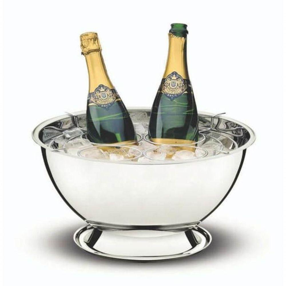 Champanheira Tramontina Service 36cm Em Inox Com Suporte Para 4 GarrafasCom a Champanheira Tramontina em Aço Inox com Suporte para 4 Garrafas 36 cm de diâmetro 12,4 L da linha Service, servir champagne ficou ainda mais sofisticado. Com acabamento em brilho e um desing elegante e prático, essa peça é indispensável para deixar o happy hour com os amigos mais elegante ou impressionar os clientes mais exigentes. Seu uso também é próprio para bufês ou eventos que exijam praticidade e alto nível.Recomendações de Uso:Antes do uso: Antes de utilizar o , remova as eventuais etiquetas e lave-o com água quente e de uso: Durante a lavagem use somente esponja macia, outros tipos de produtos, como palha de aço, poderão riscar ou prejudicar o brilho do produto. Enxágue bem a peça a fim de remover totalmente os resíduos dos produtos de limpeza, que por serem abrasivos, podem danificar o inox. Após a lavagem enxugue-o, pois as substâncias químicas contidas na água poderão causar manchas. Sempre que possível use água quente, pois renova o brilho do produto. Evite o da peça com superfícies quentes, pois podem provocar a descoloração do produto. Quando usar a máquina de lavar louça, recomendamos retirar o produto logo que tenha terminado o ciclo enxaguar, a fim de que o mesmo seja secado manualmente.- Foto meramente ilustrativa- Embalagem litografadaInformações Adicionais:- Acabamento em brilho;- Higiênico e de fácil limpeza;- Totalmente feito de aço inox;- Suporte cromado para 4 garrafas;- Próprio para uso em bufês ou eventos;- Base com borda elevada para retenção de líquidos;- Pode ser lavado diariamente na máquina de lavar louças.