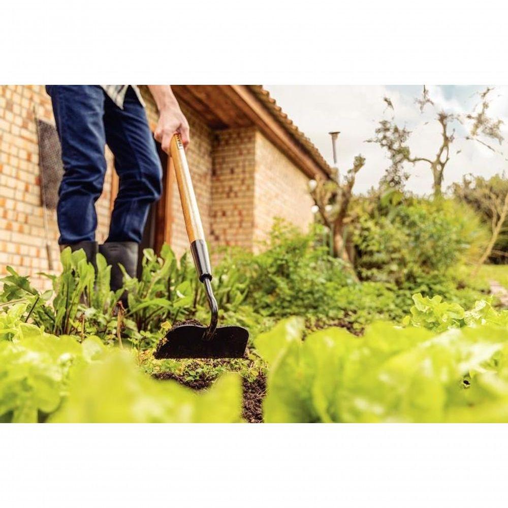 Enxada Com Haste Tramontina 6 Com Cabo De Madeira 130cmFacilite o preparo do solo com a enxada com haste 6" Tramontina em aço com cabo de madeira 130 cm. Fabricada em aço carbono com pintura eletrostática, ela oferece excelente resistência à corrosão e maior durabilidade. Seu formato é ideal para capinar, revolver a terra e realizar outros trabalhos agrícolas com eficiência. O cabo de madeira de 130 centímetros garante um manuseio confortável e firme, permitindo maior alcance e reduzindo o esforço físico. Uma ferramenta indispensável para quem busca praticidade, desempenho e qualidade nas tarefas do campo ou do jardim.Recomendações de Uso:Modo de uso: Utilizada, especialmente para carpir ou abrir pequenos valos na terra. ;Para descarte dos produtos e embalagens siga as orientações de reciclagem vigentes.- Foto meramente ilustrativa.Informações Adicionais:- Fabricada em aço carbono especial de alta qualidade;- Recebe pintura eletrostática a pó, que tem uma melhor apresentação visual e maior proteção contra oxidação;- A tinta utilizada na pintura é isenta de metais pesados na sua composição, o que minimiza o impacto ambiental;- O cabo de 130 cm desta ferramenta, além de possuir ótima resistência, é produzido com madeira de origem renovável;- A enxada é temperada em todo o corpo da peça, proporcionando maior resistência e menor desgaste durante o uso;- Cabo com acabamento envernizado, para um melhor acabamento e apresentação do produto. A camada protetora em verniz incolor realça sua tonalidade, concedendo brilho e um toque mais liso ao produto.