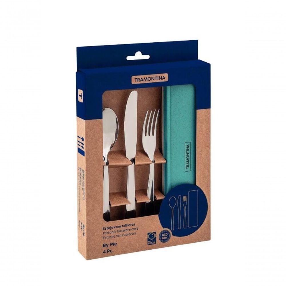 Estojo Com Talheres 4 Peças Verde By Me O Estojo para Talheres Tramontina By Me Verde 4 Peças é a escolha perfeita para fazer do seu dia a dia. Com talheres básicos e indispensáveis como colher, garfo e faca produzidos em aço inox, ele é essencial para realizar suas refeições fora de casa. Produzido com material ecológico composto por fibra de trigo com polipropileno, ele é muito leve e por isso, ideal para carregar em sua bolsa ou mochila. Com ele, suas refeições no trabalho, na academia ou na , não serão mais as mesmas!Recomendações de Uso:- Use apenas sabão ou detergente e uma esponja macia. Outros tipos de produtos, como palha de aço, poderão riscar ou prejudicar o brilho dos talheres.- Os talheres podem ser lavados diariamente na máquina de lavar louças.O estojo não é recomendado para lava louça. Higienização recomendada a mão com esponja e detergente ou sabão.- Temperatura tolerada de -20 até 100 graus Celsius.- Não vai para o microondas.Informações Adicionais:- O estojo By Me é perfeito para você!- Ideal para fazer suas refeições no escritório, na academia, na ou faculdade.- Perfeito para ser carregado na bolsa ou na mochila, pois evitam o dos talheres com a bolsa ou a mochila. - Talheres em aço inoxidável. - Estojo para talheres livre de bisfenol A (BPA). Não tóxico.- Material ecológico composto por fibra de trigo com polipropileno. - Fácil de carregar e armazenar.- Imagem meramente ilustrativa.