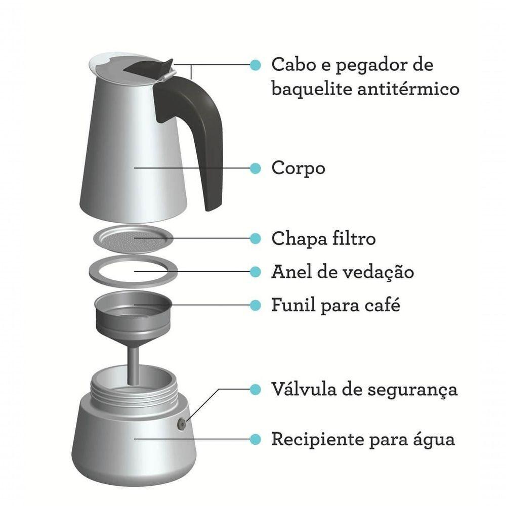 Cafeteira Italiana Para Expresso TramontinaPara saborear um delicioso café precisamos ter as ferramentas certas. Você sabia que a cafeteira italiana ainda é um dos métodos mais populares de preparo do café expresso? Com a Cafeteira Italiana Tramontina para Espresso 350 ml você irá ter uma experiência sem igual onde quer que esteja, nas férias, num piquenique ou até em um acampamento já que é fácil de transportar. Prático, dispensa o uso de energia elétrica, pois foi desenvolvida para ser utilizada no fogão através do método de infusão por vapor e seu design todo em aço inox é extremamente fácil de limpar. Linha Chá e Café, sempre garantia de bons momentos!Recomendações de Uso:Antes do Uso: Lave todas as peças manualmente com água morna e enxágue bem.Modo de Uso: Use um pano macio para limpar resíduos de café. Nunca use palhas de aço ou produtos abrasivos na Cafeteira Italiana Tramontina. Depois de lavar, seque completamente a cafeteira antes de montá-la outra vez. Antes do primeiro uso e regularmente (porém não necessariamente a cada uso), remova e lave também a borracha de vedação e a placa redonda do filtro. Substitua a borracha de vedação se ressecar, rachar ou se notar que o vapor está escapando da rosca entre a parte de cima e a de baixo.Informações Adicionais:- Serve 6 xícaras (50ml);- Funil para café em aço inox;- ;A cafeteira italiana Tramontina foi desenvolvida para ser utilizada diretamente no fogão e usa o método de infusão por vapor para fazer seu cafezinho expresso preferido. A cafeteira italiana de aço inox Tramontina funciona com a pressão do vapor e com a gravidade. O processo consiste em ferver a água na câmara inferior, o que gera o vapor e começa a fazer pressão. O vapor pressiona a água quente para fora da câmara inferior e através do pó de café, que é filtrado para a parte superior. ;- Foto meramente ilustrativa.