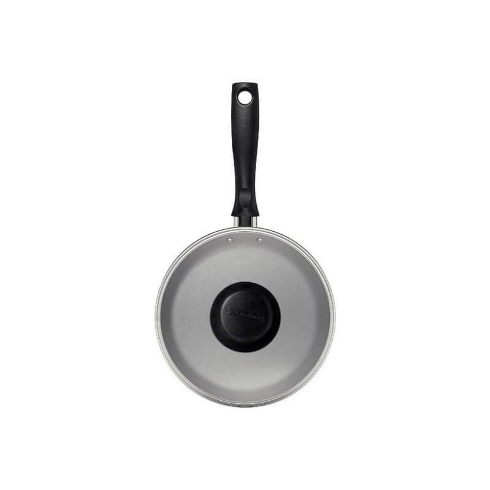 Frigideira Tramontina Para Ovo Turim Em Alumínio Chumbo 16cm Desfrute da praticidade e eficiência com a frigideira para ovos Tramontina Turim em alumínio. Com um diâmetro de 16 centímetros e capacidade de 0,5 litros, esta frigideira é perfeita para preparar deliciosos ovos, seja para o café da manhã ou jantar. Fabricada em alumínio, proporciona um aquecimento rápido e uniforme, enquanto o revestimento interno e externo em antiaderente Starflon Max evita que os alimentos grudem, simplificando a limpeza após o uso. A tampa de vidro temperado, com borda de aço inox, permite acompanhar o cozimento dos ovos, enquanto o cabo de baquelite antitérmico e pegador de nylon garantem e conforto durante o manuseio. Além disso, a frigideira é com máquina de lavar louças, facilitando ainda mais sua rotina na cozinha. Adquira já a sua e eleve o prazer de suas refeições com praticidade e qualidade incomparáveis!Recomendações de Uso:Modo de Uso: A capacidade volumétrica máxima para cozimento é de 3/4 da capacidade total da peça. Posicione os cabos dos utensílios voltados ao centro do fogão. Em fogões com grade, centralize a peça e alinhe o cabo com a grade. Utensílios quentes devem estar fora do alcance das crianças. Este produto não pode sofrer modificações. Antes do primeiro uso, lave com esponja macia, sabão neutro ou detergente líquido. Depois de secar, unte a área interna com óleo ou gordura e leve ao fogo por um ou dois minutos. Deixe esfriar e lave novamente. Seu utensílio Starflon está pronto para uso com ou sem gordura, sempre em fogo baixo ou médio (nunca superior a 350ºC). Para mexer os alimentos use somente utensílios de silicone, nylon ou madeira. Evite a imersão do utensílio quente em água fria. Nunca utilize produtos abrasivos na lavagem. Se deixar queimar alimentos, umedeça a área e reserve até que possa remover os resíduos grudados com esponja e sabão. Para descarte dos produtos e embalagens siga as orientações de reciclagem vigentes. Este produto não necessita de manutenção, apenas limpeza.- Foto meramente ilustrativa.Informações Adicionais:- Tampa de vidro temperado com borda de aço inox;- Pode ir à máquina de lavar louças facilitando seu dia a dia;- Revestimento interno e externo de antiaderente Starflon Max;- Cabo de baquelite antitérmico e pegador de nylon que oferecem durante o manuseio.