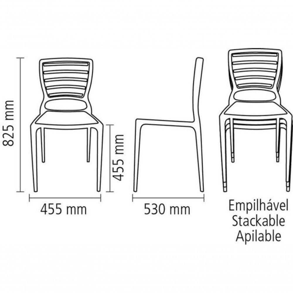 Cadeira Tramontina Sofia Em Fibra De Vidro Preto Com Encosto HorizontalA Cadeira Tramontina Sofia Preta com Encosto Vazado Horizontal promete deixar o ambiente, seja sua casa ou escritório, ainda mais sofisticado. Ela veio com uma proposta diferente, trazendo para a sua decoração uma peça robusta, bonita e moderna, ela agregará no ambiente de forma única, destacando-se pelo seu design e conforto.Recomendações de Uso:Modo de uso: para garantir durabilidade e evitar acidentes, não suba no assento, evite jogar-se sobre a cadeira ou apoiar-se somente nas pernas traseiras. Deve-se evitar a exposição prolongada ao sol. Limpar somente com pano macio e umedecido apenas com água.- Foto meramente ilustrativa.Informações Adicionais:- Cadeira monobloco, empilhável, leve e resistente.- Produzida com Tecnologia de ponta de alta qualidade.- feita em Polipropileno e fibra de vidro.- Principal matéria-prima é fibra de vidro e aditivos, portanto é altamente durável.- Empilhável até 09 peças.- Resistente a uma carga estática de até 182 Kg.- Classificada categoria B (uso irrestrito).- Produto certificado de acordo com a Portaria do Inmetro nº342/2014.- Garantia de 01 ano contra de fabricação.