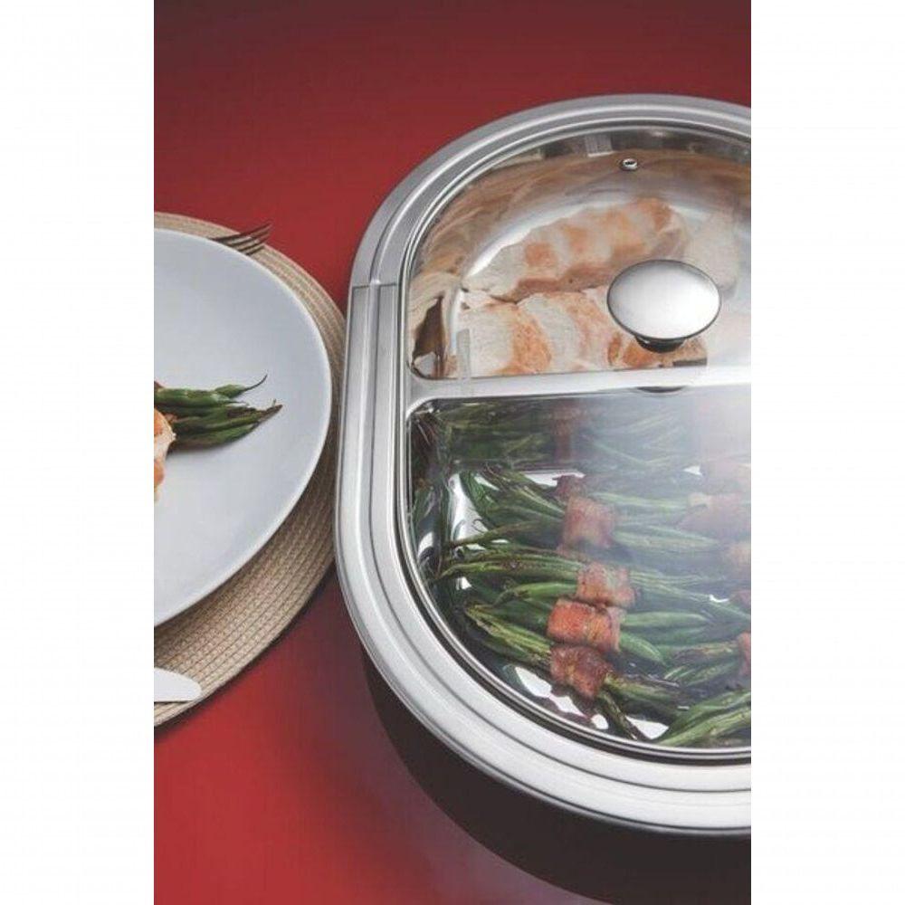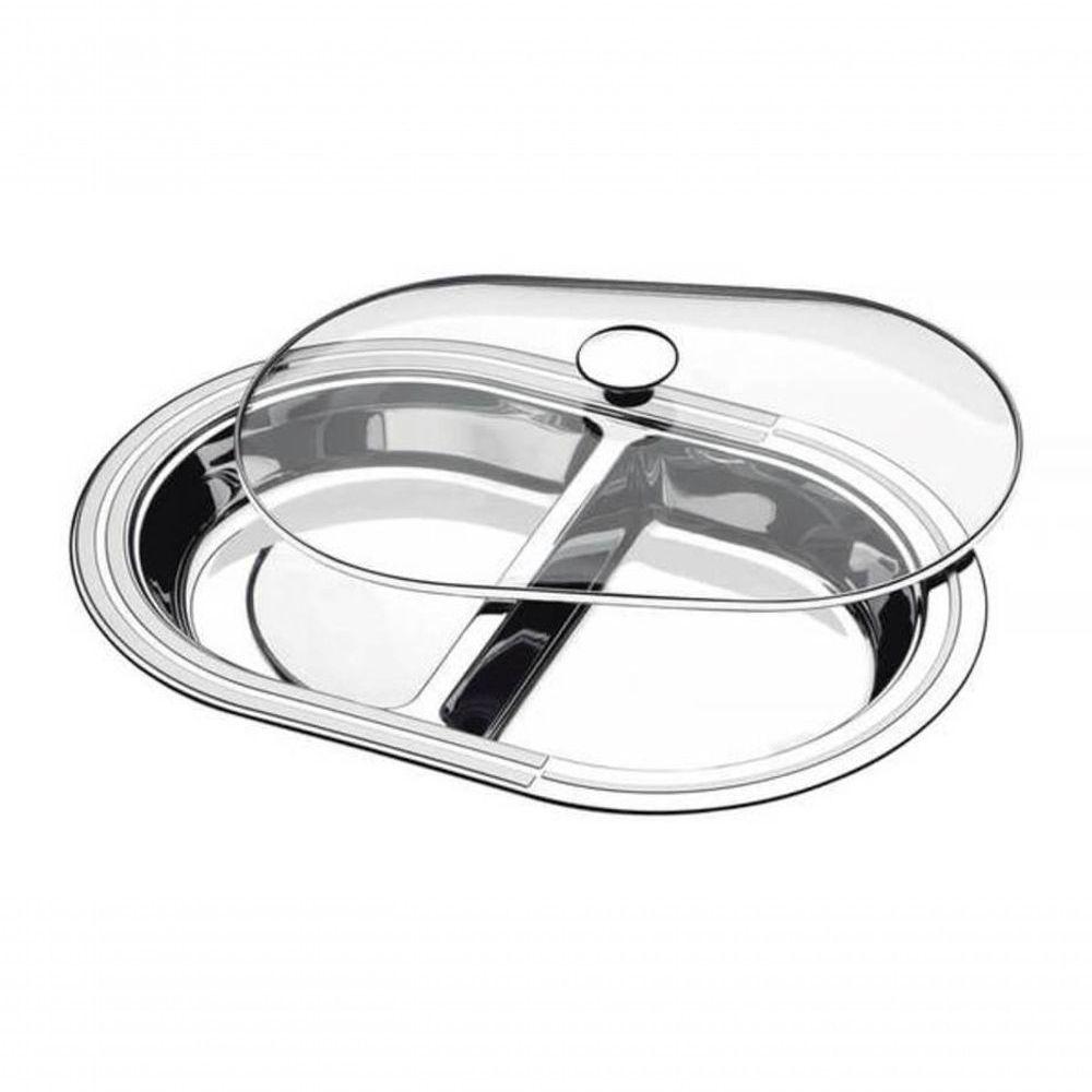 Travessa Com Divisórias Tramontina Ciclo 45cm Com Tampa De Vidro