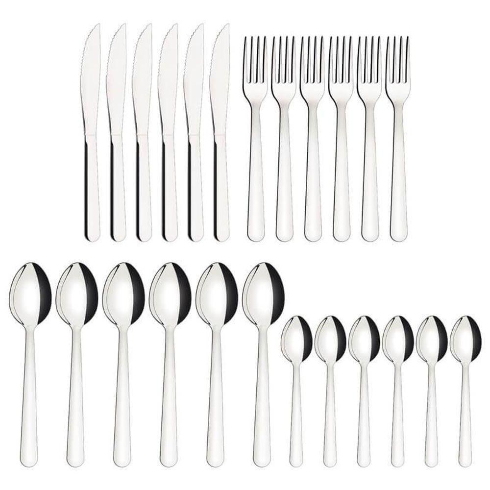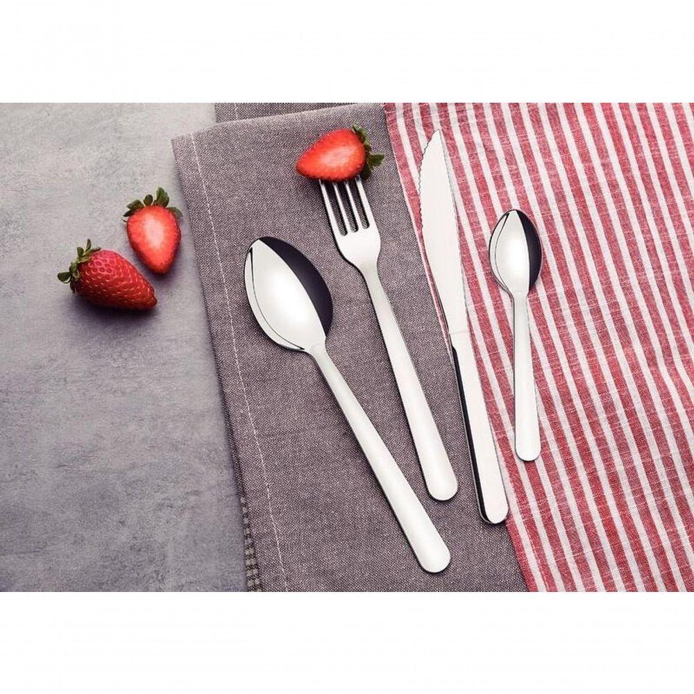 Faqueiro Tramontina Malibu Aço Inox 24 PeçasImpressione seus convidados com o Faqueiro Tramontina Malibu em Aço Inox Liso 24 Peças! Um faqueiro totalmente produzido em aço inox que oferece durabilidade e resistência, além de deixar sua mesa muito mais elegante e cheia de estilo, pois suas peças contam com um acabamento que tornam o talher ainda mais especial. Muito fáceis de limpar, os talheres ainda podem ir à máquina de lavar louças. A companhia ideal para as refeições do seu dia!Recomendações de Uso:Modo de Uso: Antes da primeira utilização, lave bem as peças e seque-as. Tenha cuidado ao manusear produtos cortantes e perfurantes e mantenha-os fora do alcance de crianças. Para maior durabilidade dos produtos, recomenda-se secar bem antes de guardar, mesmo após lavagem em máquina. Para descarte dos produtos e embalagens siga as orientações de reciclagem vigentes.- Foto meramente ilustrativa. ;Informações Adicionais:- Podem ir à máquina de lavar louças facilitando seu dia a dia;- Lâminas das facas com maior durabilidade do fio devido ao tratamento térmico;- Talheres produzidos em aço inox que mantém a beleza, a higiene e a durabilidade;- Garfos e colheres que garantem maior resistência devido a espessura do aço e a estampagem das lâminas.
