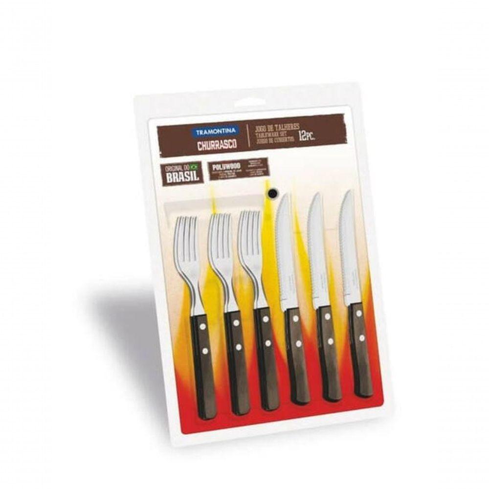 Jogo De Churrasco Tramontina Aço Inox Polywood 12 Peças Cabo Castanho