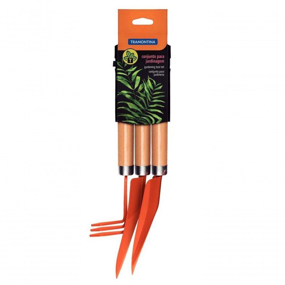 Conjunto Para Jardinagem Tramontina Em Aço Com Cabo De Madeira 3 Peças