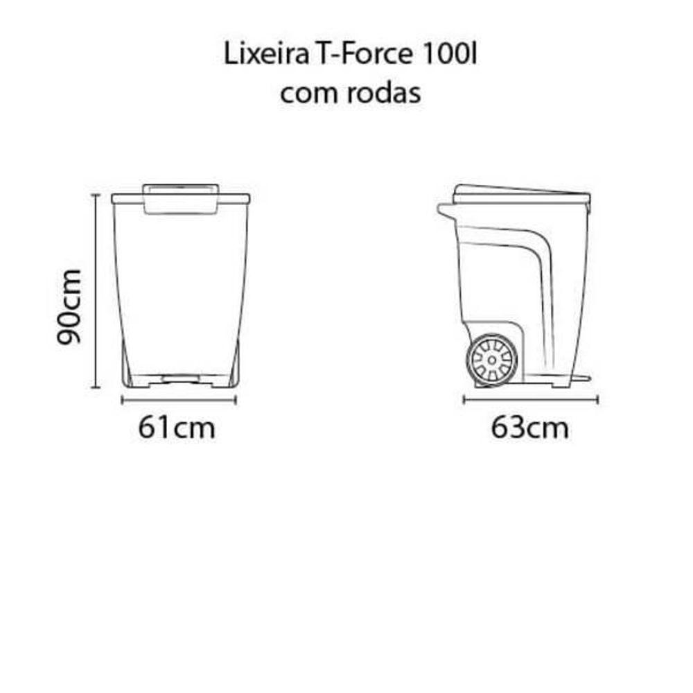 Lixeira Tramontina T-force Preto Com Rodas 100 L Tenha mais conforto e estilo com a Lixeira T-Force Tramontina Basic Preta com Rodas 100 L da Linha Basic. Com design que alia charme e funcionalidade, ela é uma lixeira em plástico polipropileno que apresenta eixo de metal e rodas de borracha, que facilitam ainda mais o dia a dia. Possui tampa acionada por pedal e haste de acionamento resistente. Possui capacidade de 100 litros e vem na sofisticada cor preta.Recomendações de Uso:- Antes de utilizar o , remova as eventuais etiquetas e lave-o com água quente e detergente.- A limpeza deste produto deve ser feita com água e sabão neutro, auxiliada por esponja macia ou tecido macio apropriado. - O uso de produto químicos, esponjas abrasivas e outros equipamentos como lava-jatos não são recomendados. - Evite exceder o limite de peso e volume estipulado para não comprometer a integridade da peça. - O ou movimentação desse produto deve ser feito com cuidado.Informações Adicionais:- Feito em polipropileno- Imagem meramente ilustrativa.
