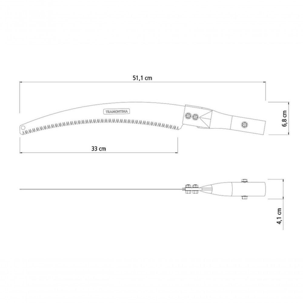 Serrote De Poda Tramontina 13" Em Aço Sem CaboPara manter suas plantas sempre saudáveis e bem cuidadas, utilize o serrote de poda metálico 13 polegadas / 330 milímetros Tramontina com empunhadura metálica sem cabo. Sua lâmina de alta afiação realiza cortes precisos, mesmo em galhos mais espessos, e a ferramenta ainda permite o uso de um cabo extensível, facilitando o alcance em locais altos com maior conforto e .Recomendações de Uso:Modo de uso: Utilizado para cortar e podar galhos altos de difícil acesso. ;Conserve a ferramenta limpa, secando-a depois de lavá-la. Aplique fina camada de óleo sobre as lâminas e articulações. ;A lâmina é afiada, o ; pode resultar lesões. Manuseie com cuidado e mantenha fora de alcançe das crianças. Para descarte dos produtos e embalagens siga as orientações de reciclagem vigentes.- Foto meramente ilustrativa.Informações Adicionais:- Empunhadura metálica;- Dentes com 3 arestas de corte;- Permite adaptação de cabos extensores;- Área de corte da lâmina de 13" / 330 mm;- Lâmina em aço carbono ível e de alta durabilidade;- Elevado grau de afiação dos dentes: confere precisão de corte e dispensa retoques periódicos;- Perfil dos dentes projetado para cortar nos dois sentidos de movimento: assegura um corte limpo e sem rebarbas. Facilita a cicatrização do galho.