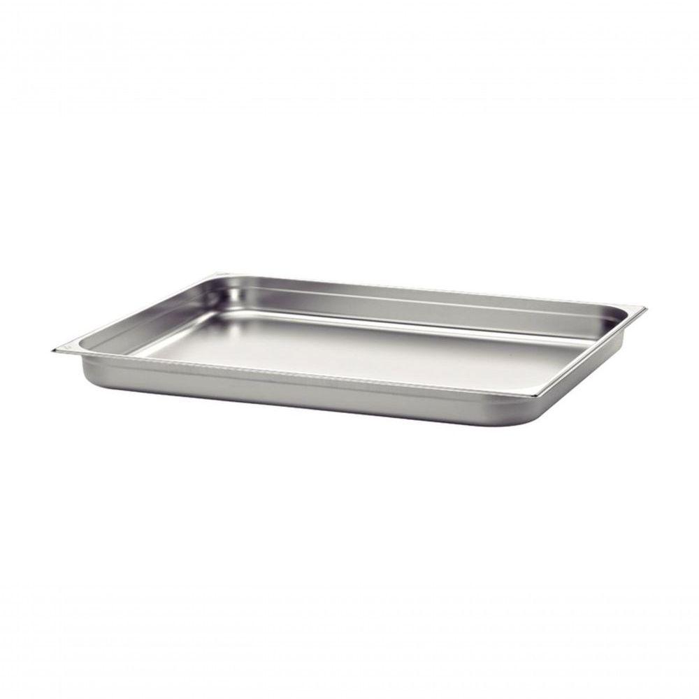 Cuba Tramontina Gn 1/1 Em Aço Inox Sem Alças Profundidade 20 MmA Cuba Tramontina 1/1 em Aço Inox sem Alças Profundidade 20 mm é o produto ideal para servir deliciosos pratos quentes em seu restaurante. Fabricada totalmente em aço inox, essa cuba não solta nenhum resíduo nos alimentos, mantendo-os saudáveis e sempre prontos para o consumo dos clientes. Além de oferecer praticidade na hora de guardar já que conta com paredes laterais rebaixadas internamente facilitando na hora de empilhar. Seu restaurante com toda a qualidade que a Tramontina pode oferecer.Recomendações de Uso:Antes do uso: Antes de utilizar o , remova as eventuais etiquetas e lave-o com água quente e de uso: Alguns alimentos que possuem amido, por exemplo massa e arroz, poderão deixar manchas na parte interna do utensílio. Essas manchas são facilmente removidas, passando um pano com suco de limão, vinagre ou a Pasta de Polir Inox Tramontina. Para que o produto de aço inox Tramontina fique sempre bonito e com brilho, recomendamos que seja lavado somente com detergente e esponja. Depois da lavagem, sempre que possível, enxágue o produto com água quente e seque-o imediatamente, para que se mantenha com o brilho . O cloro e as substâncias contidas na água podem deixar manchas.- Foto meramente ilustrativa- Embalagem litografadaInformações Adicionais:- Sem alças;- Material: Aço 304;- Capacidade: 2,50l;- Profundidade: 20mm.