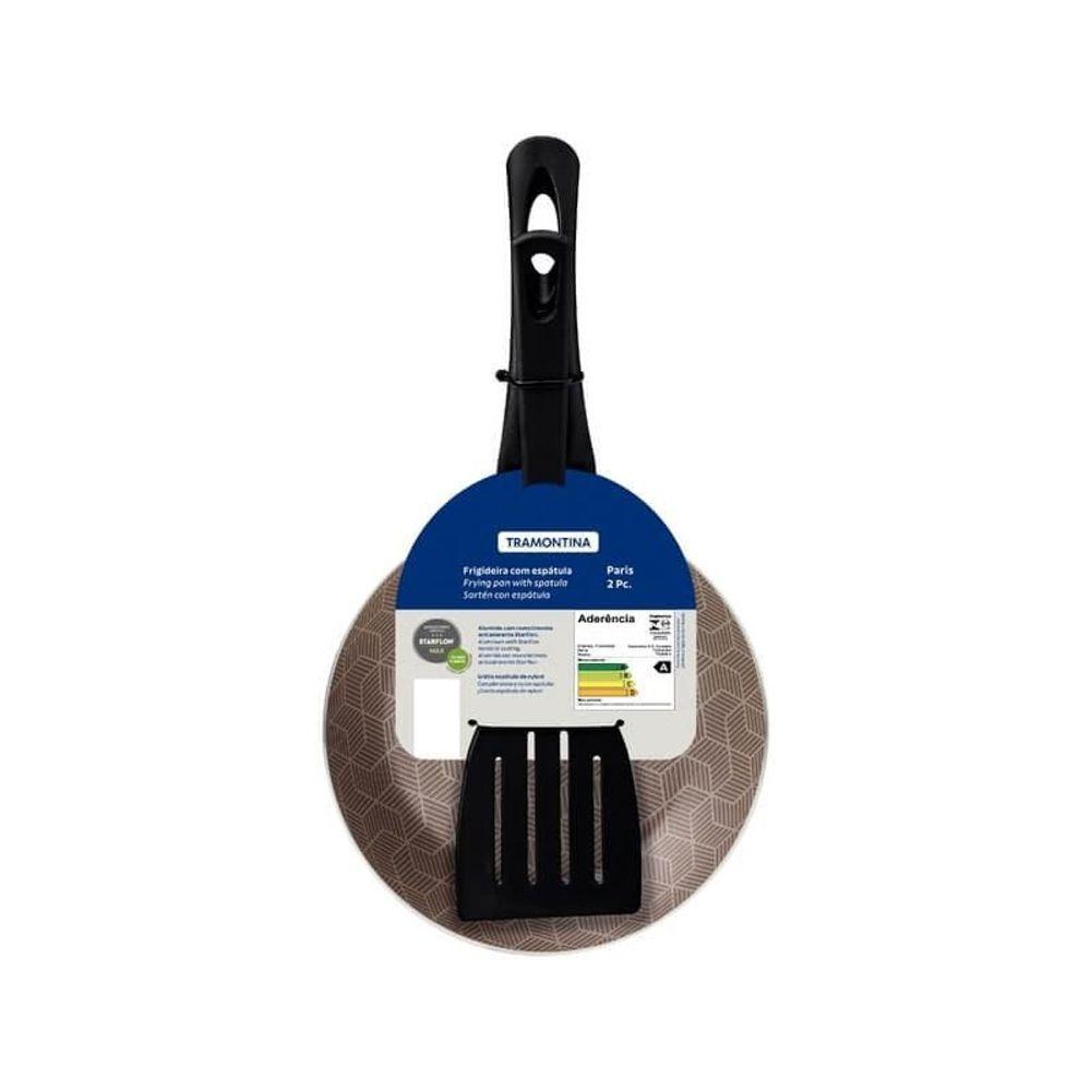 Frigideira Tramontina Paris 18cm Em Alumínio E Revestimento Antiaderente Com Espátula De Nylon VermelhaA frigideira Tramontina Paris em Alumínio com Revestimento interno e externo em antiaderente Starflon Max vermelho com espátula de nylon 18 centímetros 0,6 litros vai garantir muito mais praticidade e qualidade para diversos preparos de refeições! Produzida em alumínio com espessura de 1,8 milímetros com revestimento interno e externo em antiaderente Starflon Max, características que proporcionam um cozimento rápido e uniforme dos alimentos, evitam que eles grudem em sua superfície, a tornam fácil de limpar, mais durável e não prejudicial a sua saúde. Para garantir maior , o cabo é em baquelite antitérmico, material que não aquece. A frigideira vem com espátula de nylon, que é ideal para uso em superfícies antiaderentes e ainda ser levada à máquina de lavar louças, levando maior praticidade para seu dia a dia!Recomendações de Uso:Modo de Uso: A capacidade volumétrica máxima para cozimento é de 3/4 da capacidade total da peça. Antes do primeiro uso, lave com esponja macia, sabão neutro ou detergente líquido. Depois de secar, unte a área interna com óleo ou gordura e leve ao fogo por um ou dois minutos. Deixe esfriar e lave novamente. Seu utensílio Starflon está pronto para uso com ou sem gordura, sempre em fogo baixo ou médio (nunca superior a 260 ºC). Para mexer os alimentos use somente utensílios de silicone, nylon ou madeira. Com o uso, o cabo pode afrouxar devido à dilatação normal dos materiais. Reaperte apenas o suficiente, sem forçar. Limpeza: Evite a imersão do utensílio quente em água fria. Nunca utilize produtos abrasivos na lavagem. Se deixar queimar alimentos, umedeça a área e reserve até que possa remover os resíduos grudados com esponja e sabão. Para descarte dos produtos e embalagem siga as orientações de reciclagem vigentes.- Foto meramente ilustrativa.Informações Adicionais:- Podem ir à máquina de lavar louças facilitando seu dia a dia;- Corpo de alumínio que proporciona cozimento rápido e uniforme;- Cabo de baquelite antitérmico que oferece durante o manuseio;- Revestimento interno e externo de antiaderente Starflon Max que não gruda, livre de PFOA;- Espátula de Nylon que permite uso em temperaturas de até 180 °C e cabo com furo passante possibilitando que seja pendurado na sua cozinha.